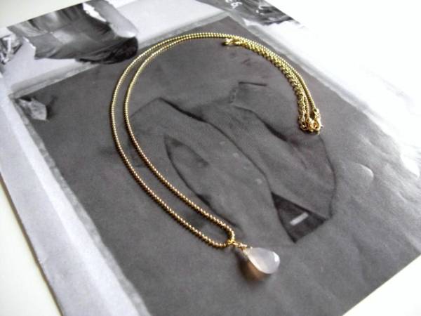 巴里色・デッサン・・シリーズです♪儚げな水色・・・神秘的なグレーカルセドニーのネックレスです♪華奢なボールチェーンを合わせてロマンチックな表情です♪15×10ミリのドロップカットのグレーカルセドニーに華奢なボールチェーンを合わせました♪長さは70センチ+アジャスター12センチで最長82センチ位です♪お揃いのネックレスやブレスレットも出品しています♪ハンドメイドをご理解頂いてノークレーム、ノーリターンでお願いします