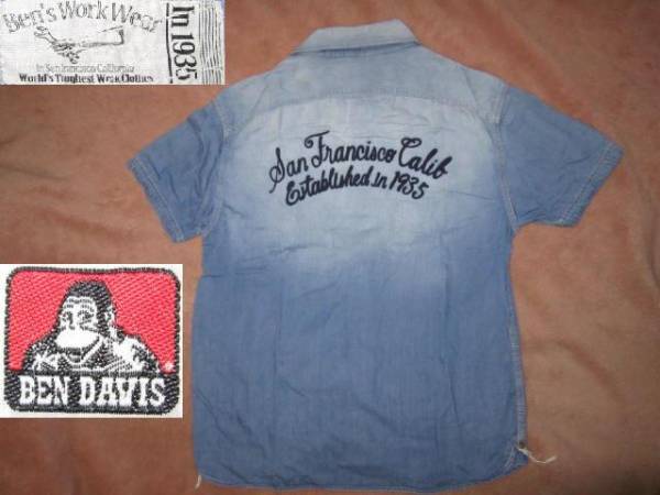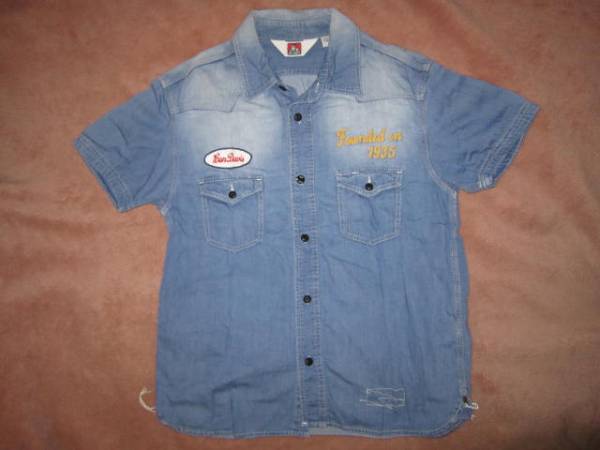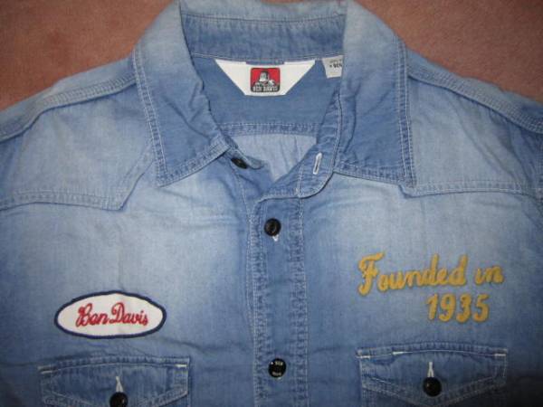 BENDAVIS ベンデイビス インディゴ染め USED加工 ワッペン チェーン刺繍 シャツ L チェーンステッチ刺繍