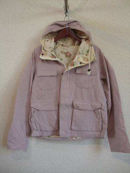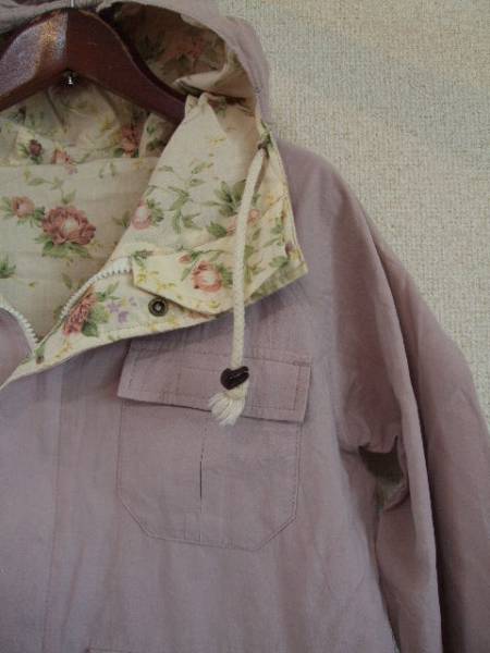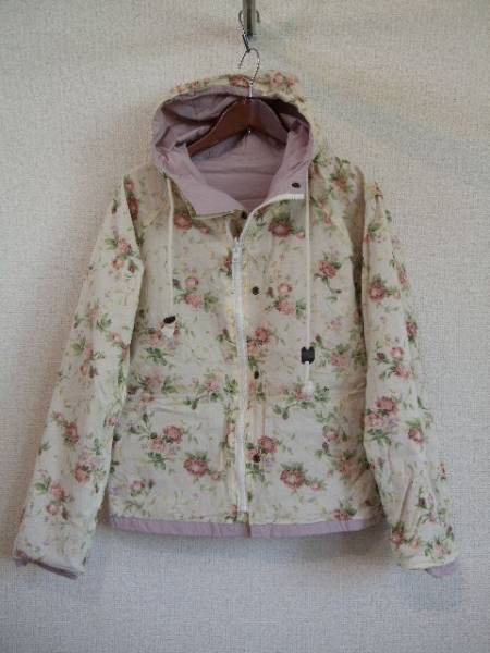 | 商品紹介 | 淡いラベンダー色とベージュににバラ柄のリバーシブルになった ブルゾンです。 素材:品質表示タグが無い為、不明 |