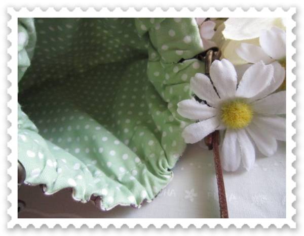 内布には 若草色に 白のドット柄の生地 ( 綿 100% ) を使っています。