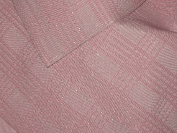 女性yukata用、地紋柄結び帯  うすピンク(ラメあり) ポリエステル  新品(織り地紋柄ありです。波状の写りはレンズの光学的ないたずらで現品にはありません、また薄く濃く写っている場合もあります)、胴部--帯巾約17,0cmx長さ約130cm、リボン部は横に約30cm。見た範囲で汚れないと思いますが、着用に差し支えない薄汚れ(多分ない?)はあってものお値段で出品です。