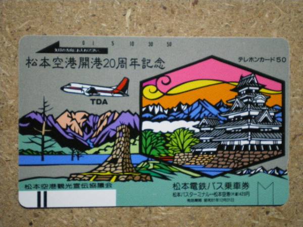 hiko・航空 110-3474 東亜国内航空 お城 松本城 電鉄バス テレカ