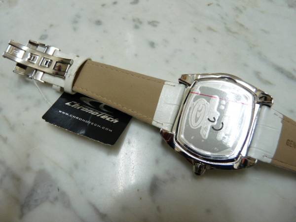 Chronotech*クロノテック*腕時計*展示品 サイズ:フェイス3.5x4.5cm、重さ:90g、全長:26.5cm、8穴(19cm~24cmまで調節可能)幅:2cm 材質:カーフ 備考:電池式!ギャランティーカード付