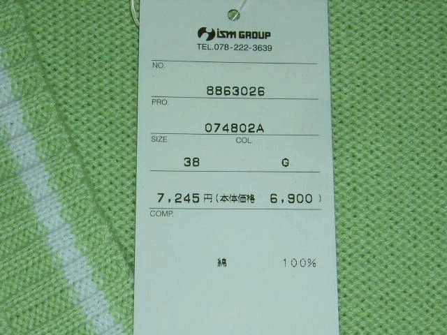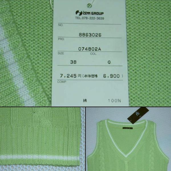 タグ付き・未使用◆IZE/Vネックニットベスト38号緑系7,245円/長期保管品