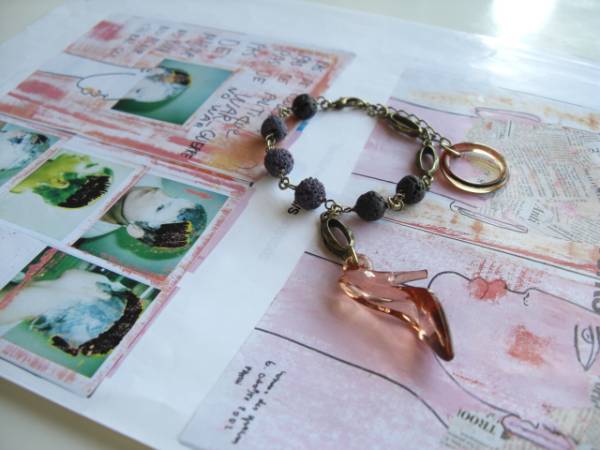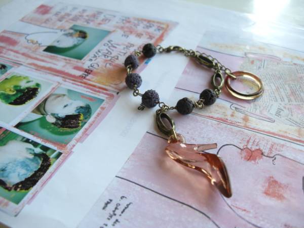 一粒の幸せ・・シリーズです♪魔法の靴に恋して・・シックなダークパープルのラバーストーンのブレスレットです♪琥珀色の樹脂の靴のチャームやデザインチェーンを合わせてニューヨークモダンしています♪ラバーストーンは8ミリ位、靴のチャームは20×32ミリ位です♪長さは全長22センチ位で調節自由です♪トップは6センチ位です♪♪お揃いのネックレスも出品しています♪♪シンプルで飽きのこないいつまでも着けられるデザインを考えて作りました!ハンドメイドをご理解頂いてノークレーム、ノーリターンでお願いします