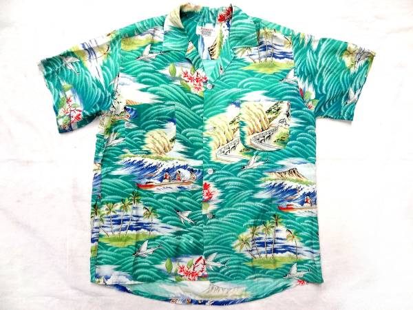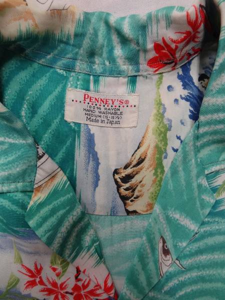 ビンテージ PENNEYS ペニーズ 希少 50S メイドインジャパン ハワイアン レーヨン 総柄 プリント 半袖 シャツ 日本製 レア