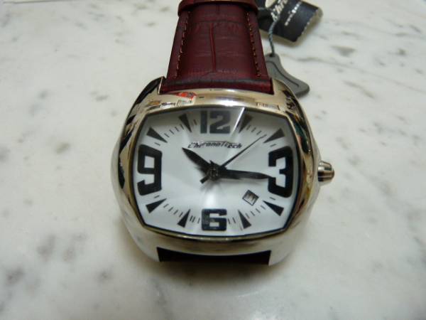 Chronotech*クロノテック*腕時計*展示品 サイズ:フェイス4x5cm、重さ:90g、全長:26cm、9穴(18cm~23cmまで調節可能)幅:2.3cm 材質:カーフ 備考:電池式!付属品なし