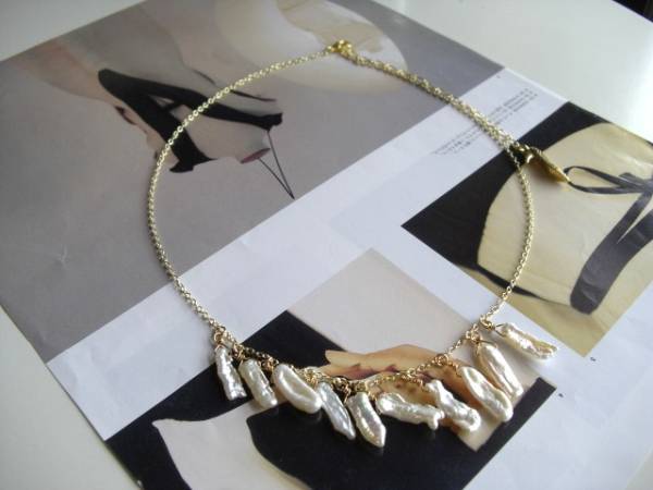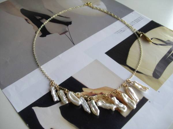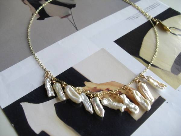 女の子らしさを+して・・シリーズです♪パール物語・・繊細な淡水ビワパールのネックレスです♪華奢なチェーンを合わせて可憐な表情です♪ネックレスは16+7ミリ位のクレオデザインのビワパールです♪長さは50センチ+アジャスター10センチで最長60センチ位です♪お揃いのブレスレットやピアスも出品しています♪ハンドメイドをご理解頂いてノークレーム、ノーリターンでお願いします