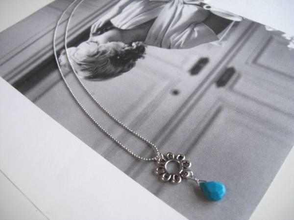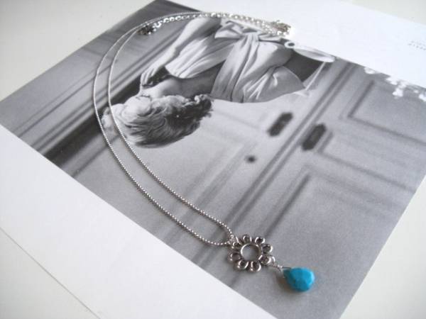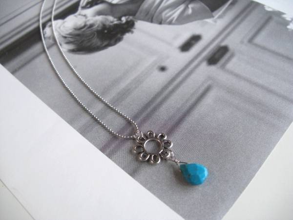 セシル・スタイル・・シリーズです♪フレンチ・ターコイズ・・シックなターコイズのネックレスです♪ドロップカットのターコイズにフラワーリングや華奢なチェーンを合わせて可憐な表情です♪14×10ミリのドロップカットのターコイズにフラワーリングや華奢なボールチェーンを合わせました♪長さは63センチ+アジャスター12センチで最長75センチ位です♪トップは4センチ位です♪お揃いのネックレスやブレスレットやピアスも出品しています♪シンプルで飽きのこないいつまでも着けられるデザインを考えて作りました!ハンドメイドをご理解頂いてノークレーム、ノーリターンでお願いします