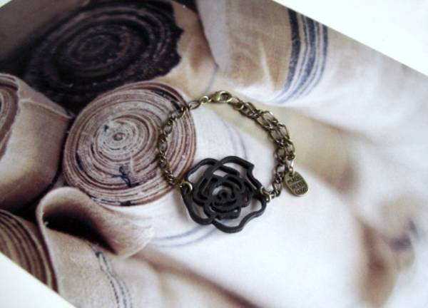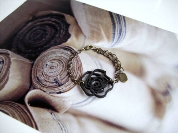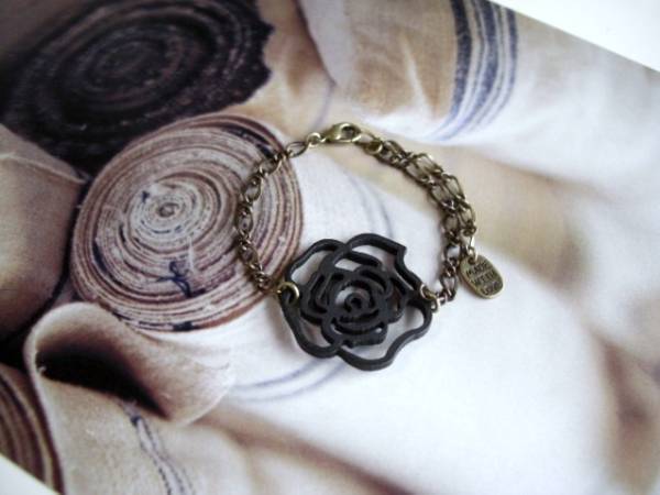 幻想・セレクション・・シリーズです♪漆黒の黒・・ウッドの薔薇・・シックな秋色のブレスレットです♪35ミリ位のウッドの薔薇はデザインチェーンを合わせました♪長さは全長23センチ位で調節自由です♪お揃いのネックレスやブレスレットも出品しています♪シンプルで長く着けられるデザインを考えて作りました!ハンドメイドをご理解頂いてノークレーム、ノーリターンでお願いします
