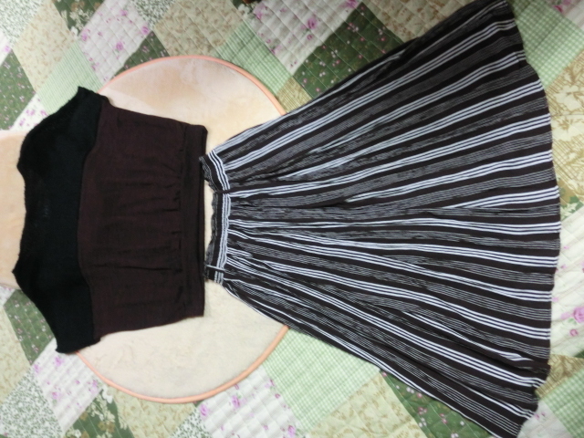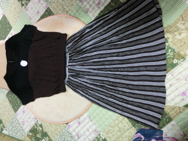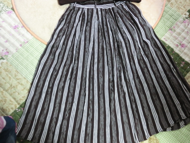 素敵な茶系色ストライブ柄のスカートを組み合わせてました。