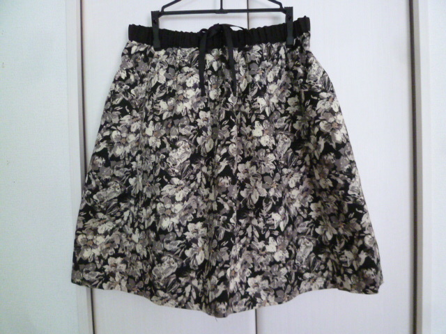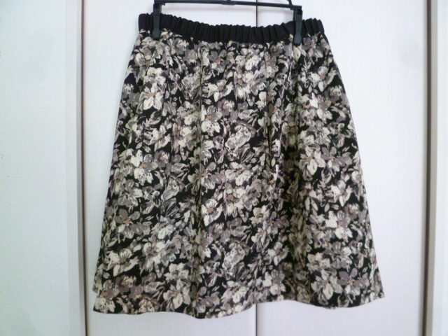 TOTALITE/トータリテ△モノトーン系花柄ふんわりフレアースカート/ジョイントワークス膝丈△SK713