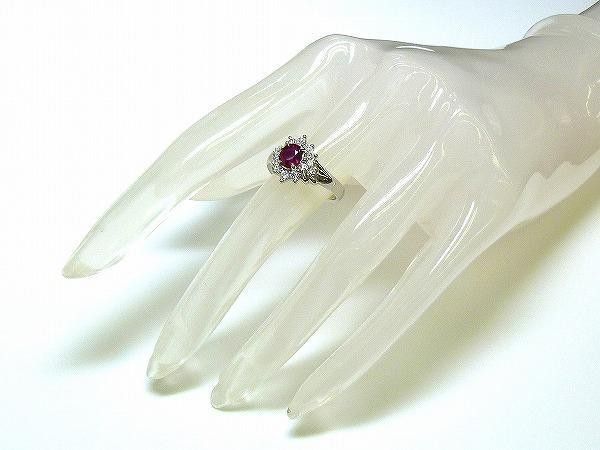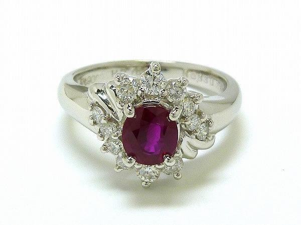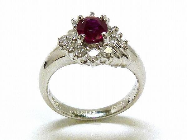 リング本体は、オーバル形状のルビーの周囲に、12ピース計0.38ctのラウンドダイヤモンドをセット、メインのルビーを優雅に飾るゴージャス且つエレガントな逸品です。