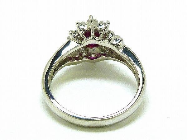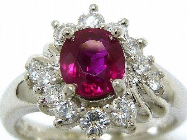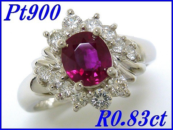 センターに0.83ctの高品質クラスのルビーをセットした、プラチナベースのリングです。