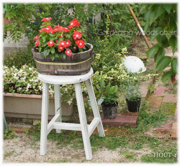 ガーデニング鉢置きスツール☆  シャビー レトロ イス型 レトロ 白色 アンティーク風