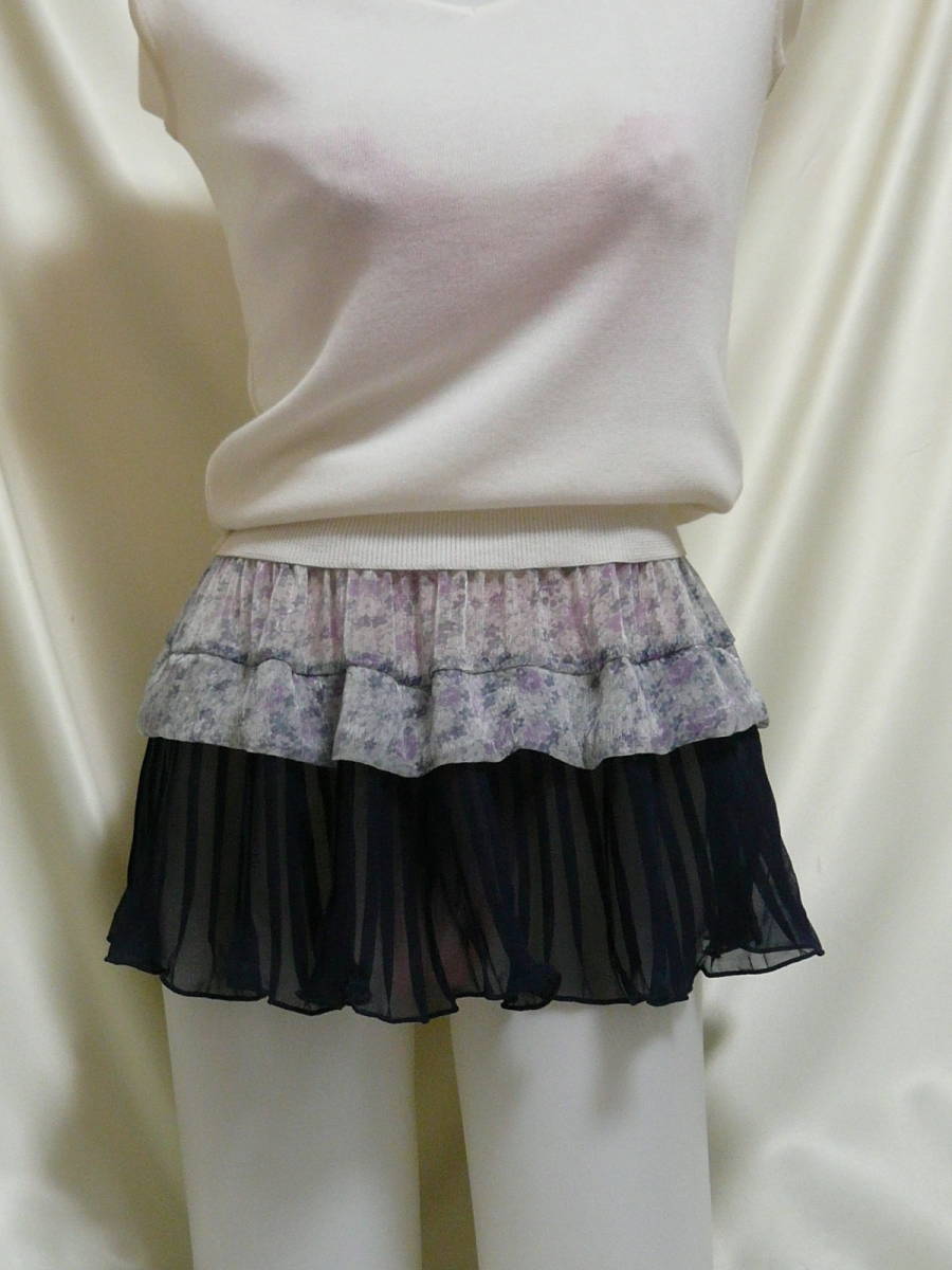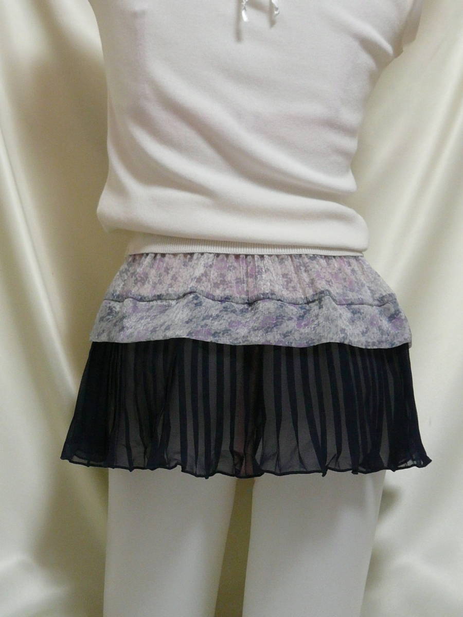 ♪♪グレー小花柄の超マイクロミニ☆裾の濃紺プリーツが透けます^^♪♪