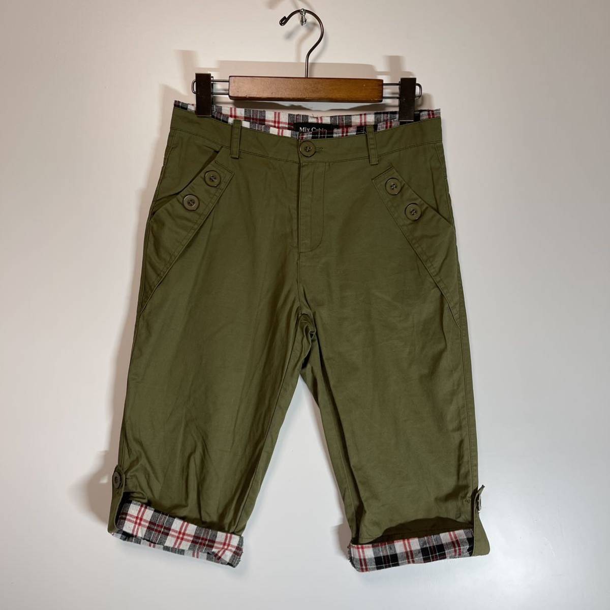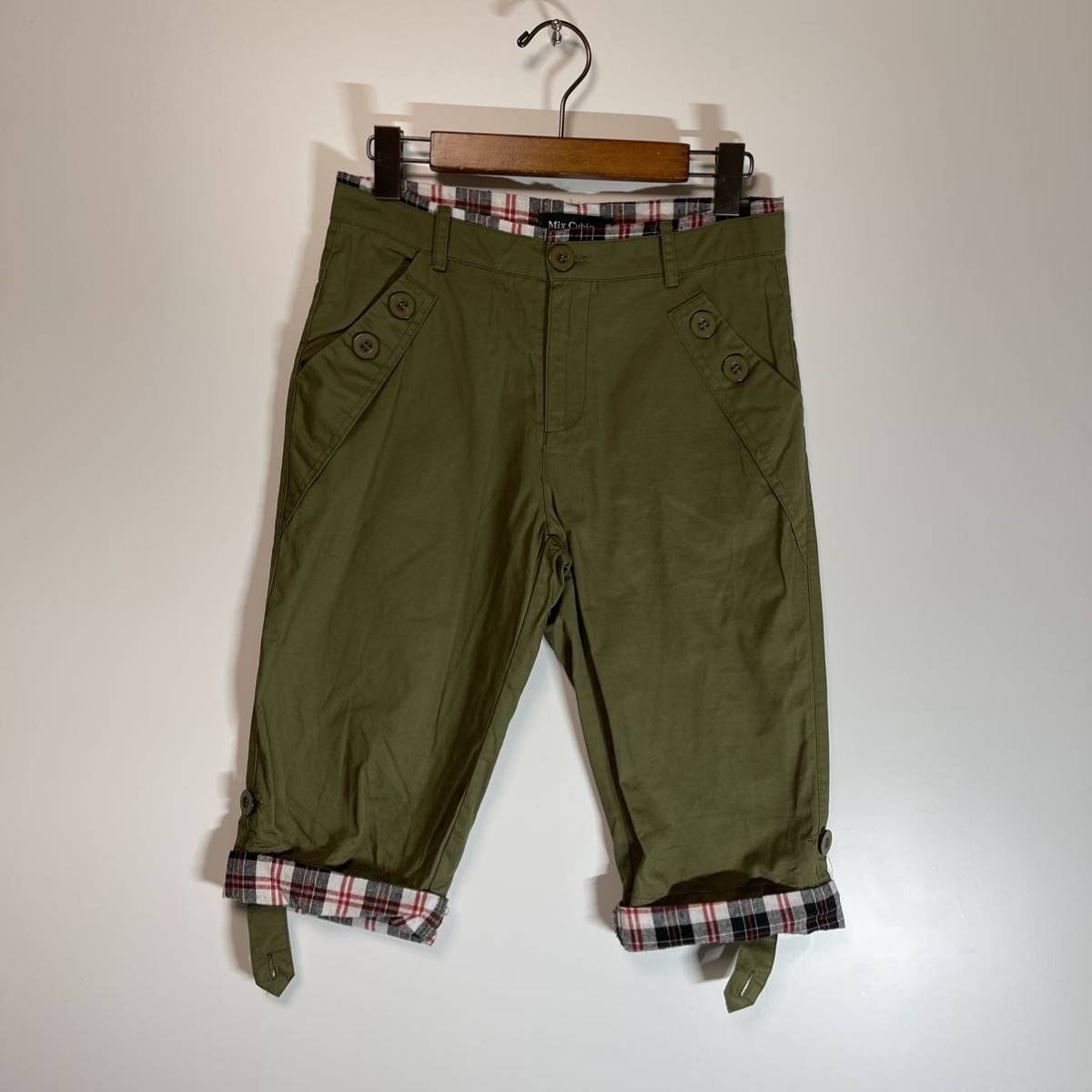 Mix Cubic ミックスキュービック ロールアップ 膝丈パンツ カーキ