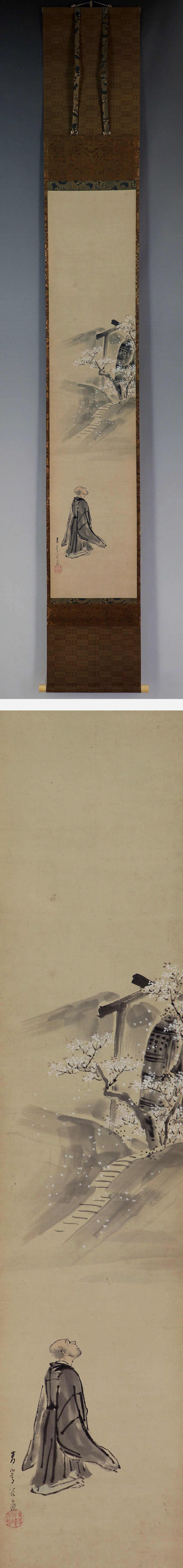 | №2106123【真作】高嵩谷【芭蕉観桜図】◆紙本◆共箱◆掛軸 | |
