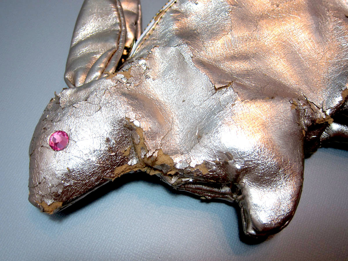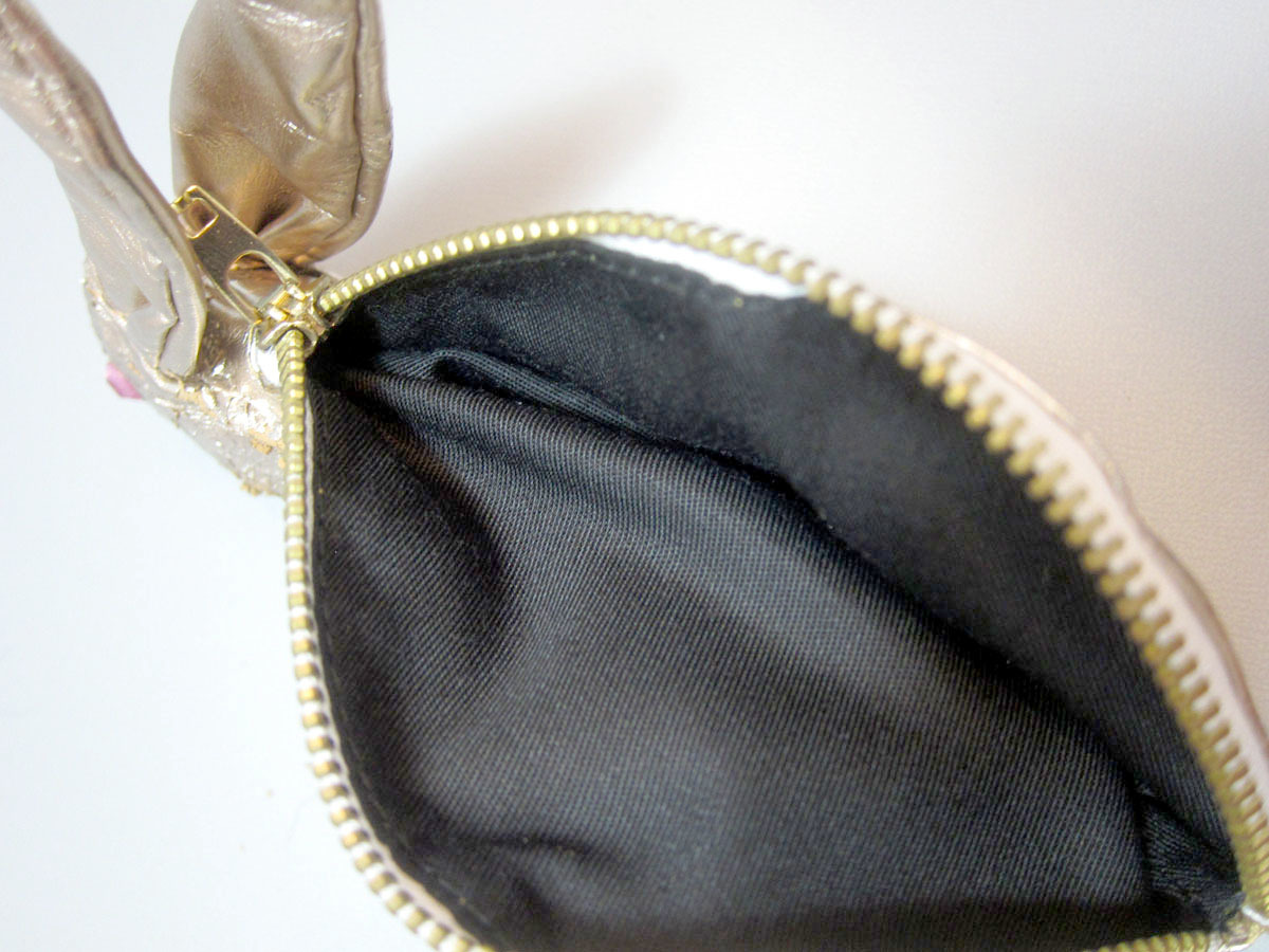 即決★うさぎ★ポーチ★ピンク★キラキラ目★ピンクゴールド★難あり★リメイク★手作り★補修★手芸★未使用★ウサギ★ラビット★バニー
