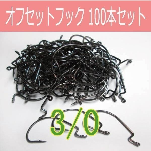 【 送料無料 】オフセットフック Offset hook 3/0 100本セット ワームフック ワーム針 サイズ9種類(#6~5/0)◇