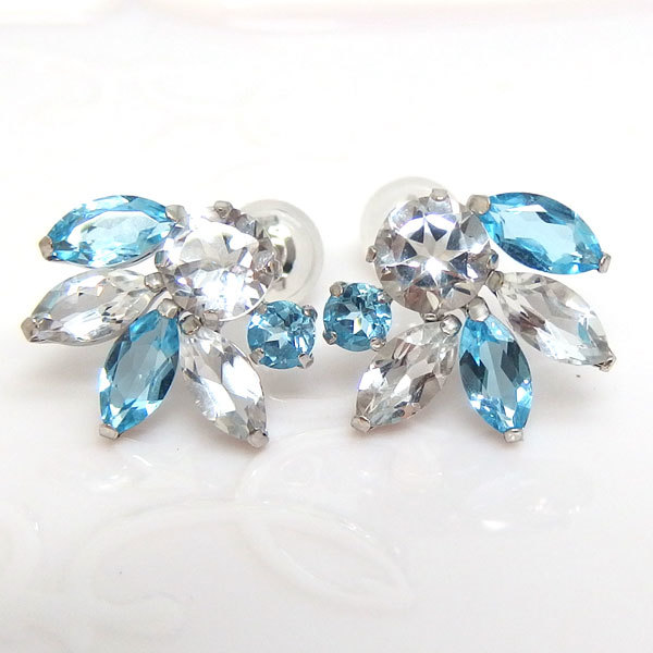 濃厚なブルーの彩りと綺麗な透明感を持ったロンドンブルートパーズと透明なホワイトトパーズの2色のコンビネーションがおしゃれです