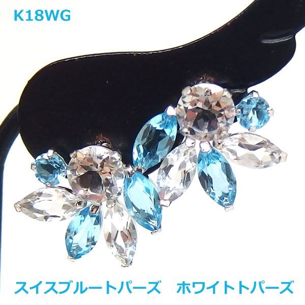 商  品  名 K18WG極上ロンドンブルートパーズデザインピアス3.2ct■IA1640