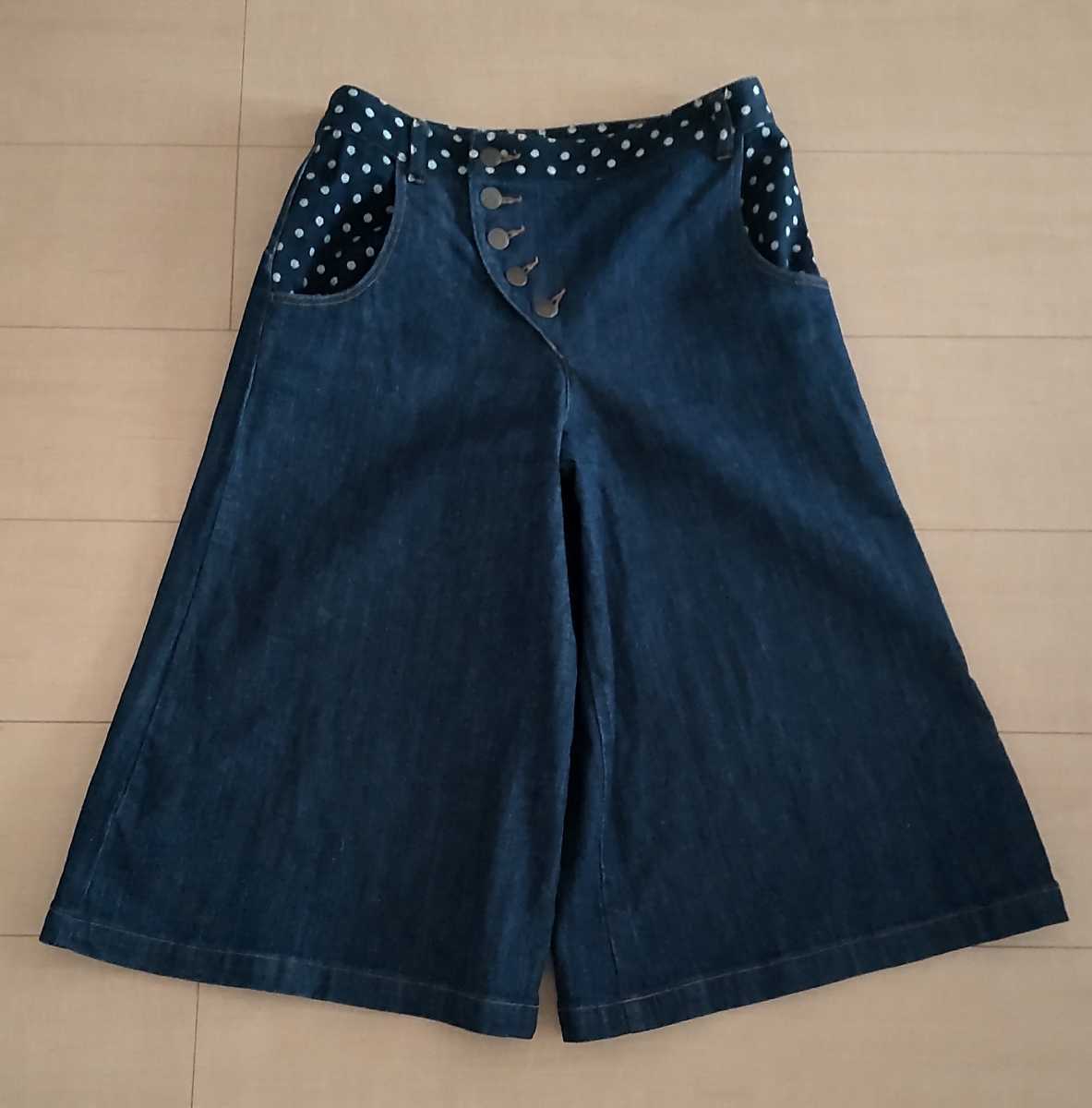 ★ホコモモラ★デニム★ガウチョ★ブルー★ドット★used品★