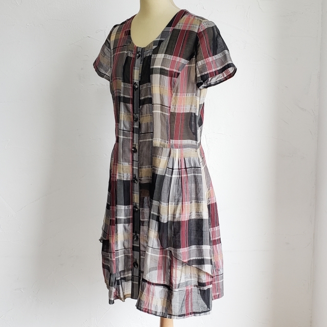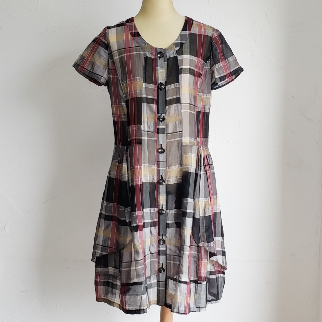 t.b センソユニコ チェック柄 シャツ ワンピース 38 シルク混 日本製 Sensounico | |