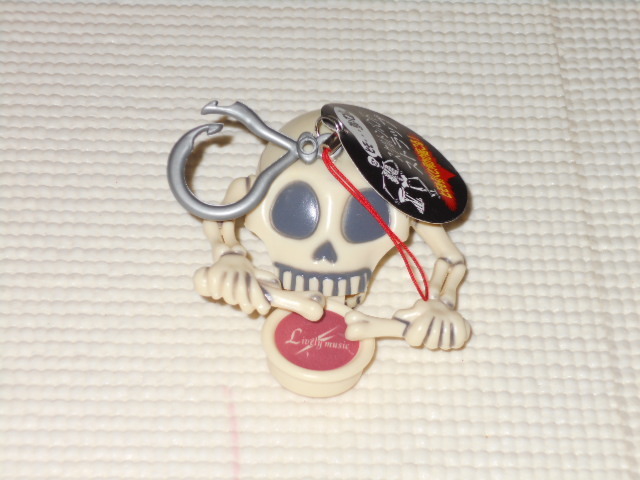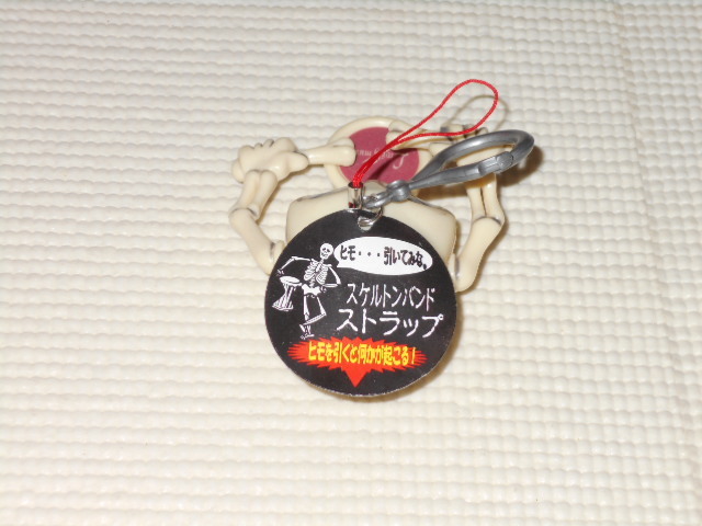 スケルトンバンド ストラップ 赤 タグ付 ヒモを引くと太鼓をたたきます★動作確認済★入札と同時に落札