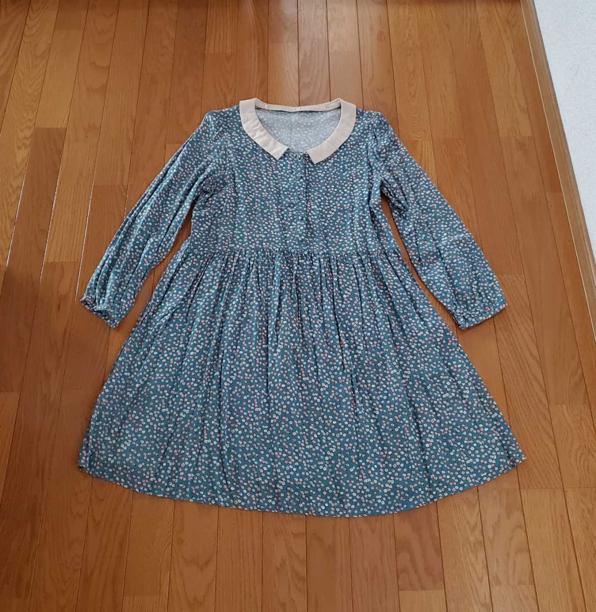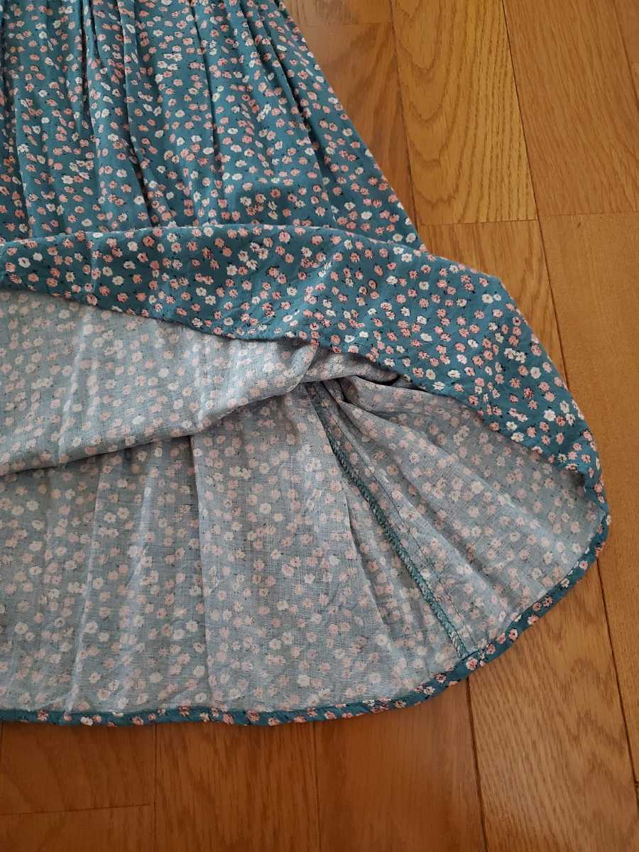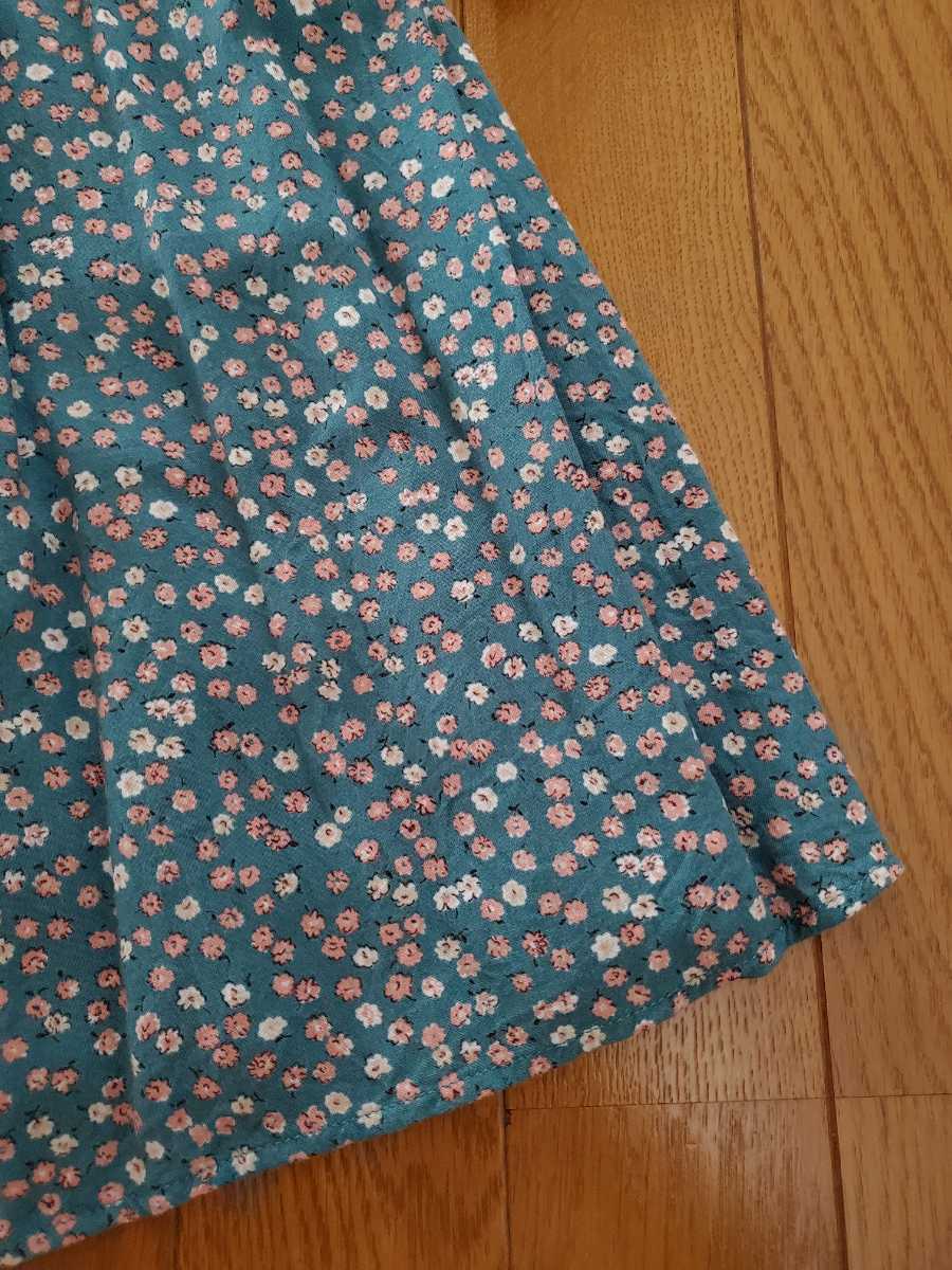 グリーン系の花柄の膝丈ワンピースです。