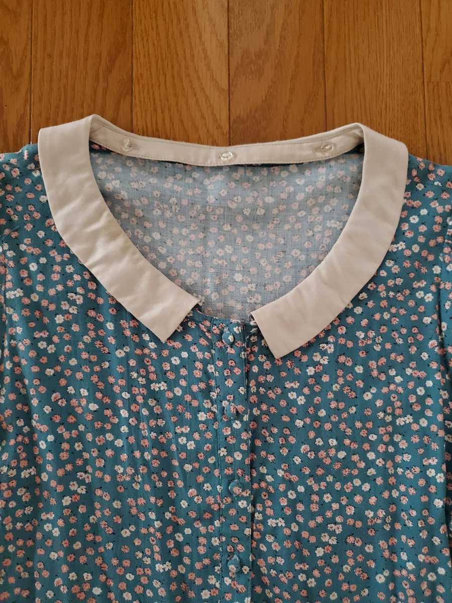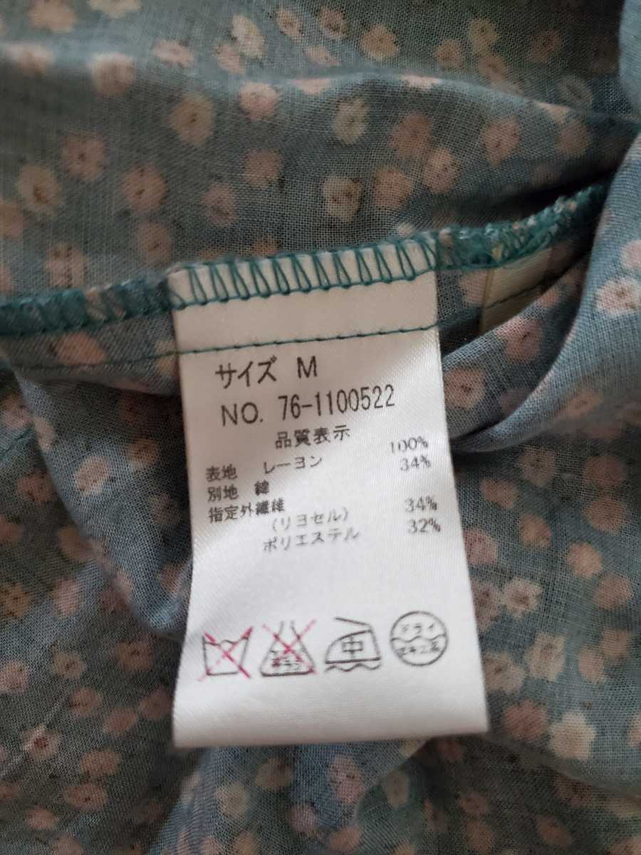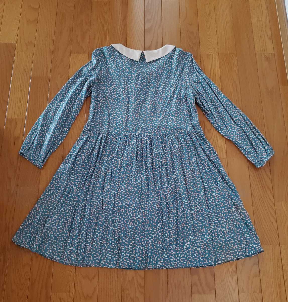 グリーン系の花柄の膝丈ワンピースです。