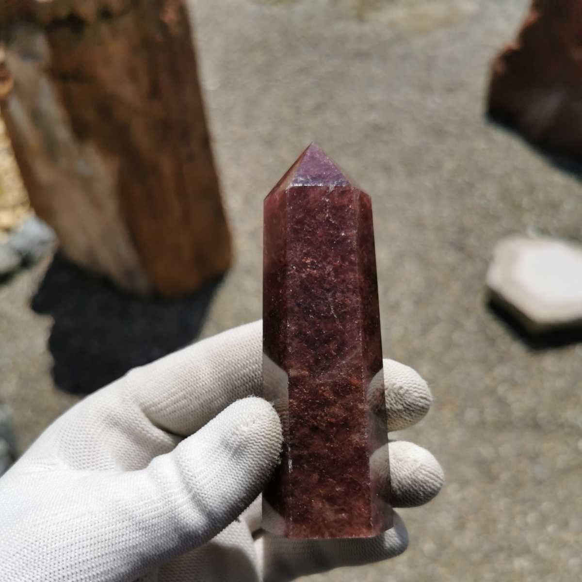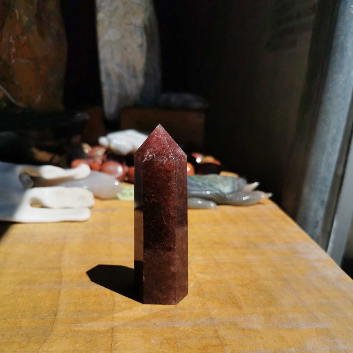 重さ141.4グラム!高さ9.9センチ横3.2センチ奥行き2.9センチ!ストロベリークォーツポイント!