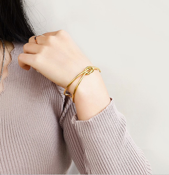 金属素材:ステンレス、線径約2.4mm。カラー :18KGF。 内周:約16~17cm(調整可能)。