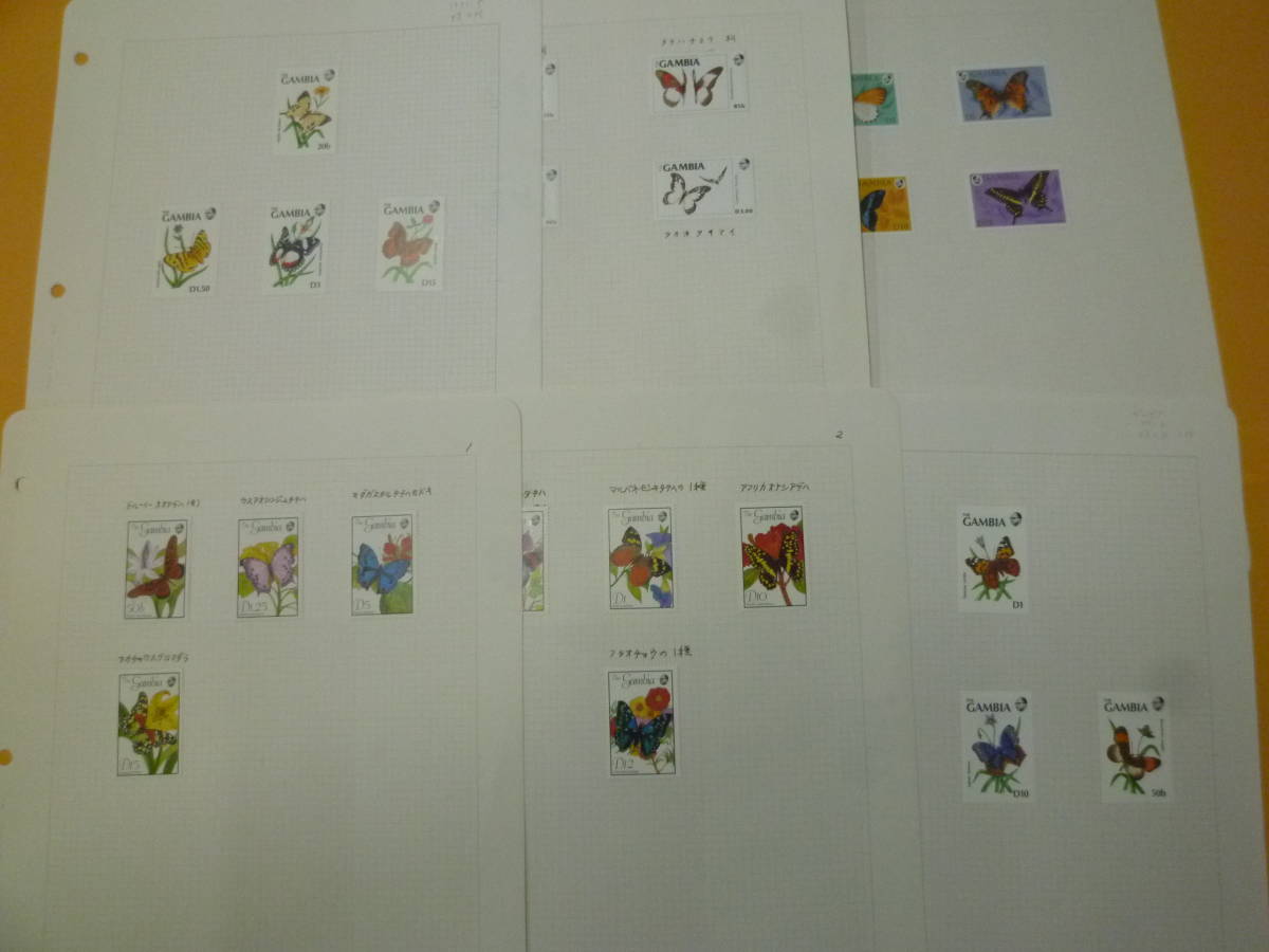 21MI S №63 世界各国 蝶切手 ガンビア 計24種 6リーフ 未使用 ※説明欄必読