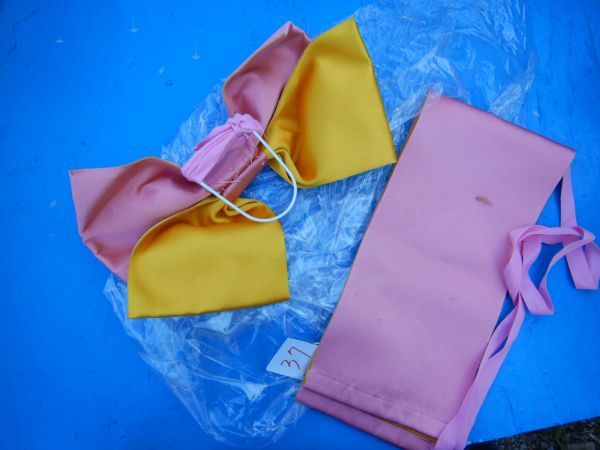 浴衣37 35x20cm ピンク黄色 結び帯 おび ゆかた 祭り 着物 和風 夏