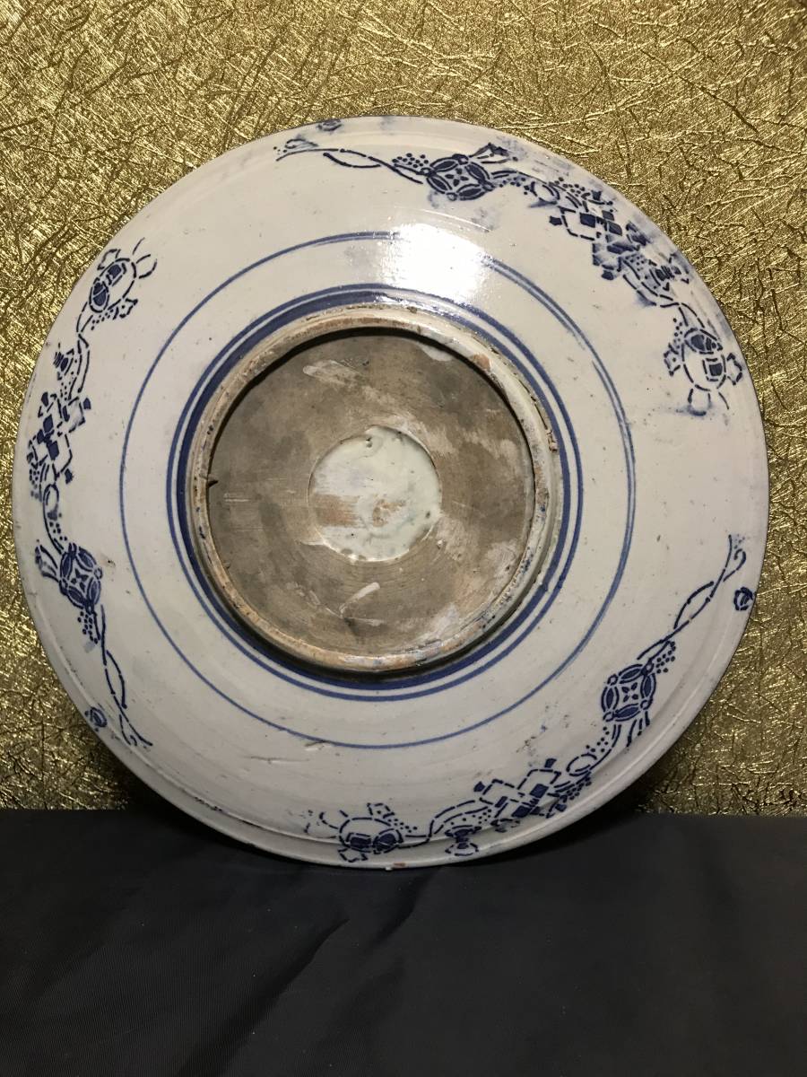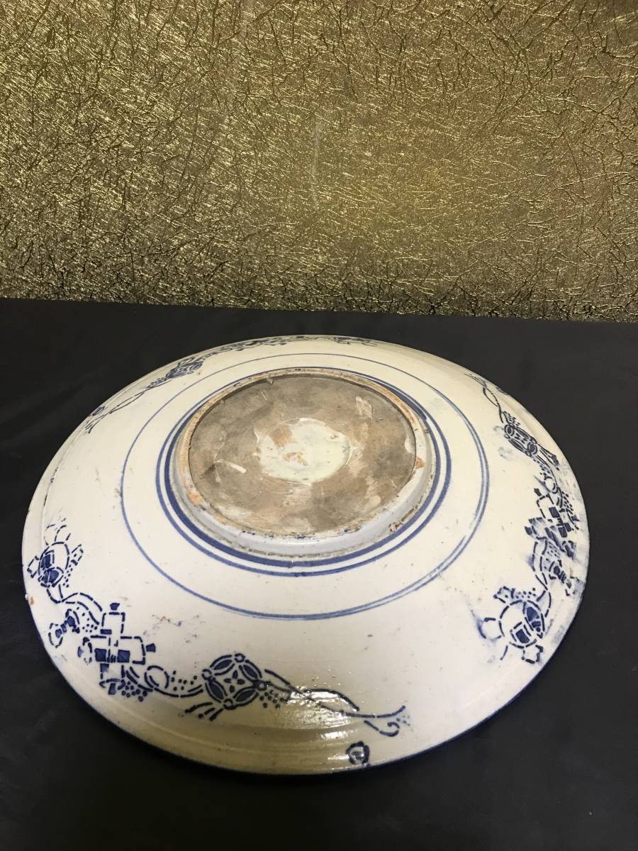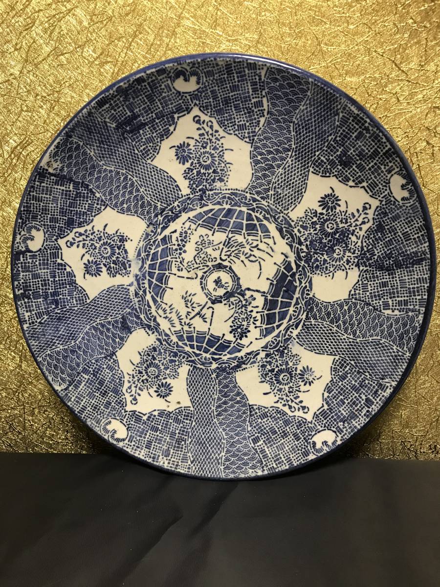 変わり絵 印判 皿  日本 陶器 アンティーク 青唐草模様 絵皿 染付 明治 大正 骨董品