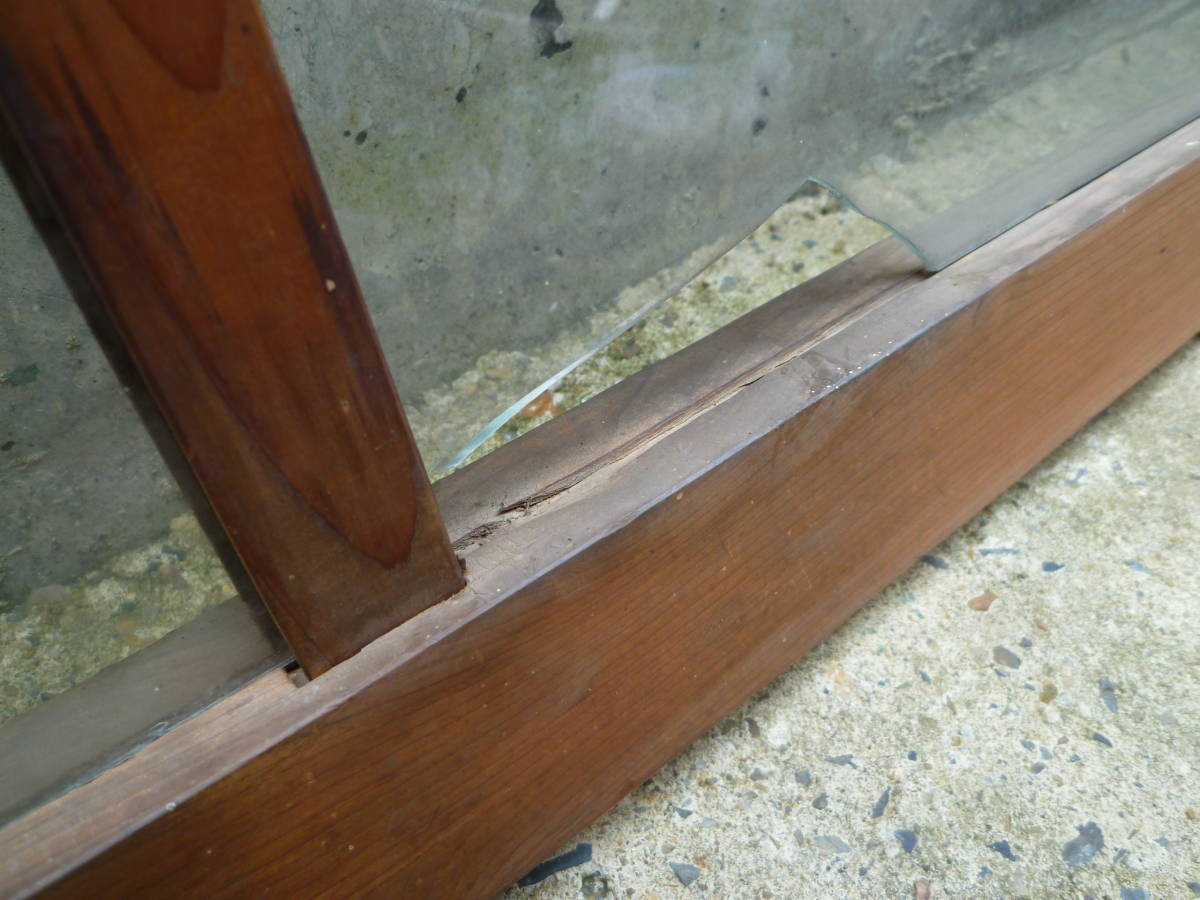 最終値下げ!M7796 50~100年前 奥京都 古窓 フレームと当時物ガラス2枚割れあり 奥3cm 横94.5cm 高さ49cm ゆうパック160サイズ(0305)