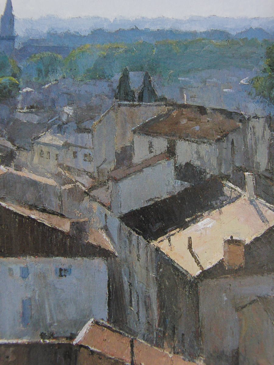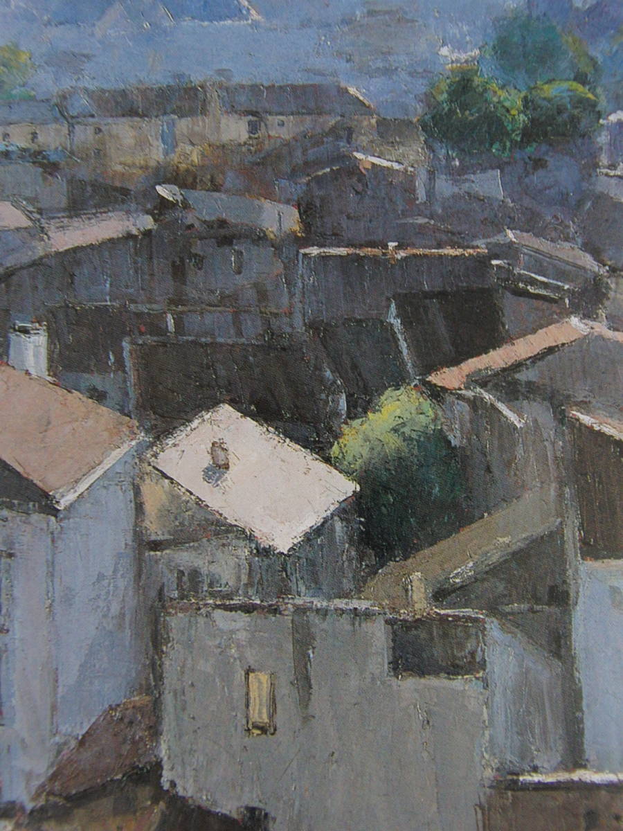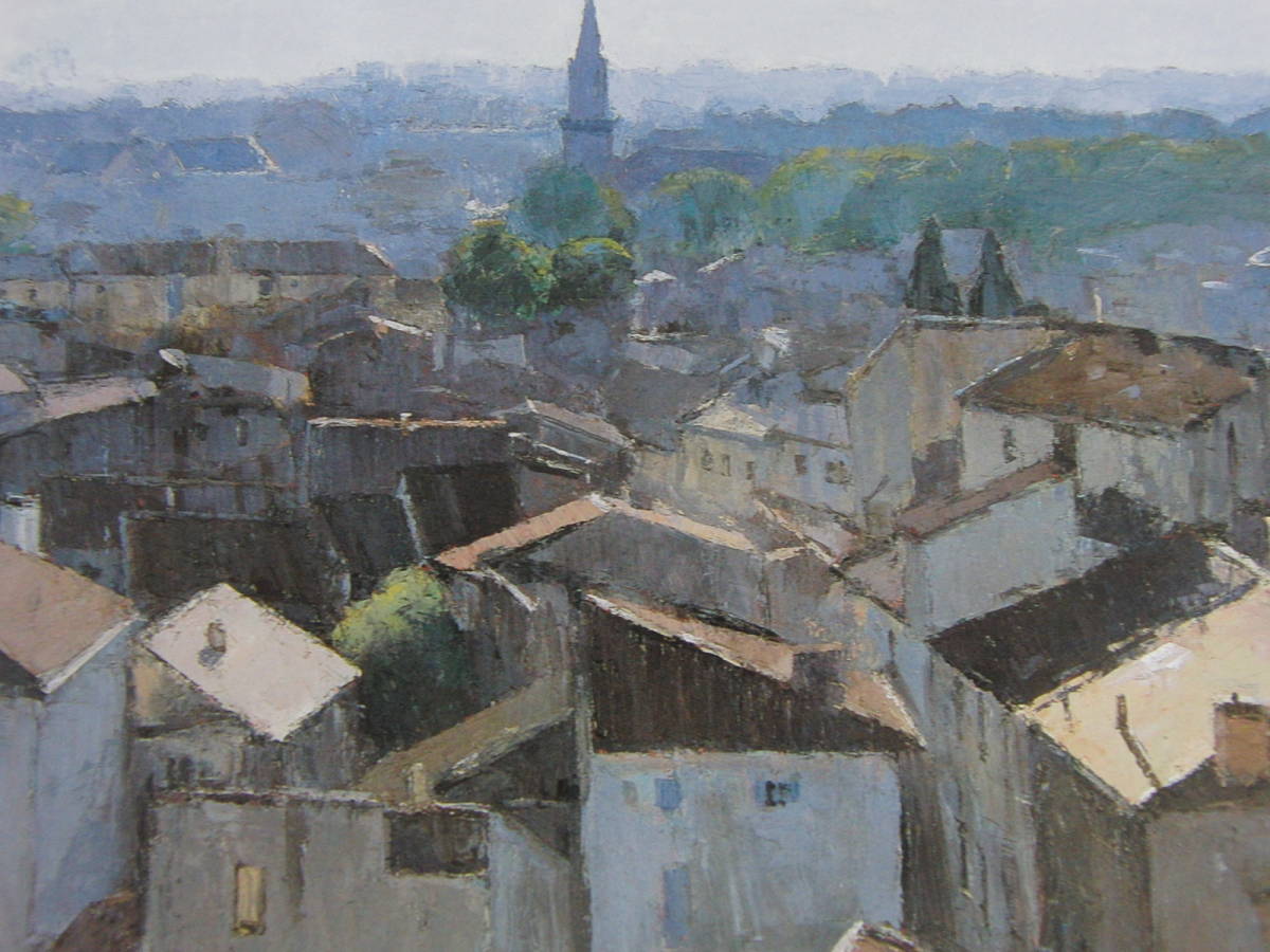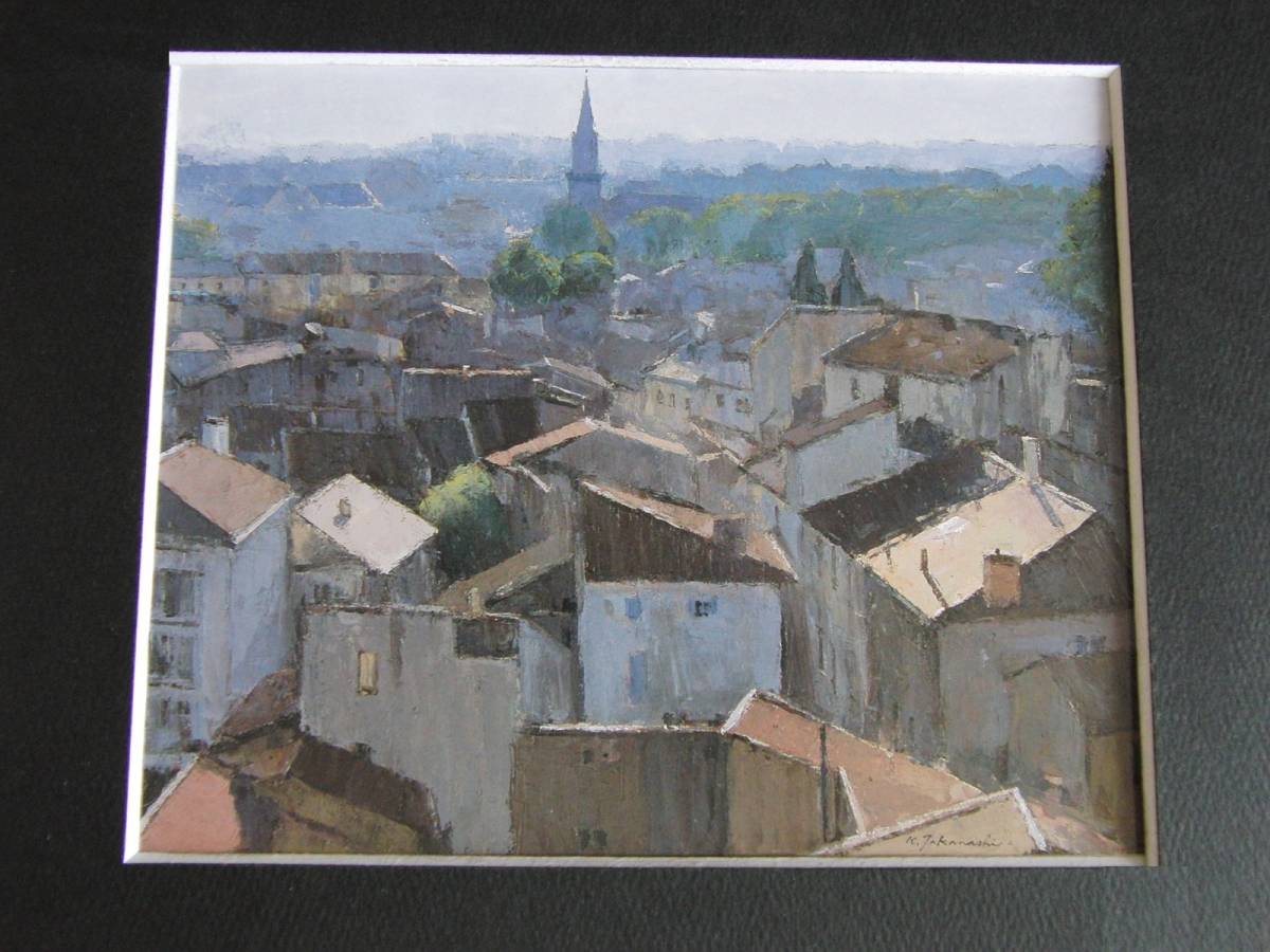 高梨潔、〈朝霧の街〉、希少画集画、高級新品額・額装付、状態良好、送料無料