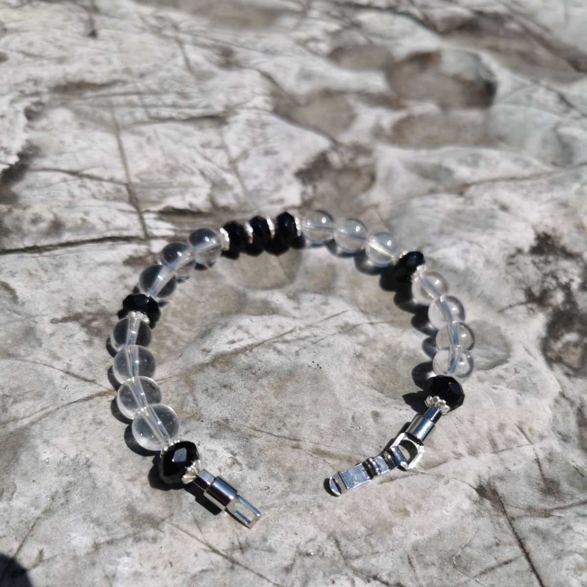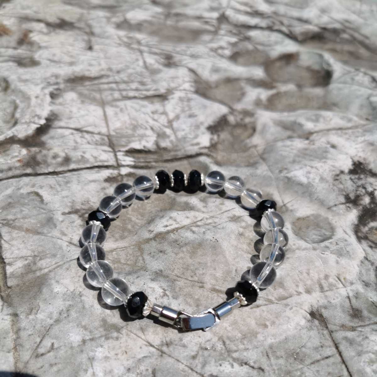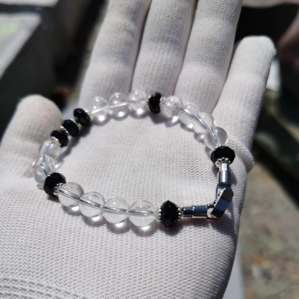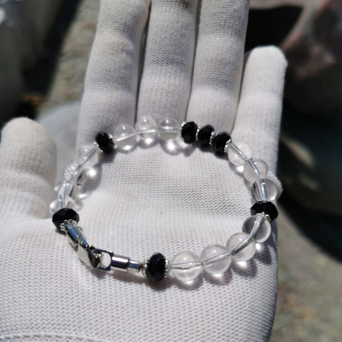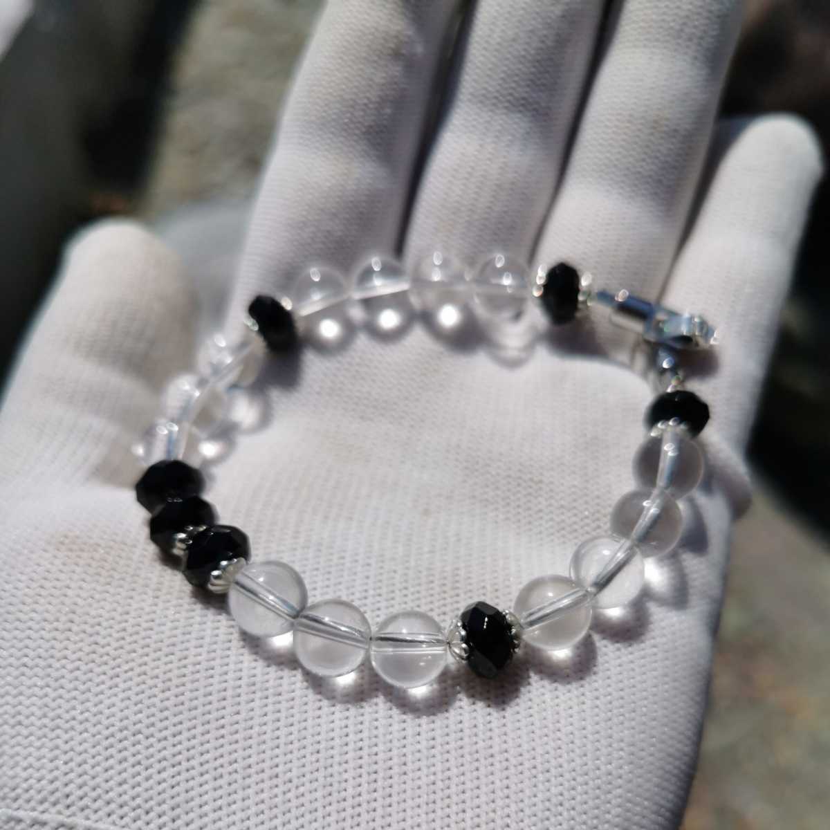 ブラックスピネルボタンカット8ミリ水晶8ミリ17.5センチブレスレット!玉の間にあるのは925です!留具は中折れ式!中はナイロンコートワイヤーです!ブラックスピネルはボタンカットなので輝きが綺麗!送料無料宜しくお願いします!
