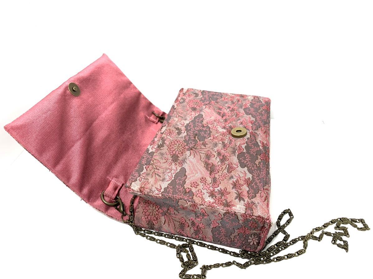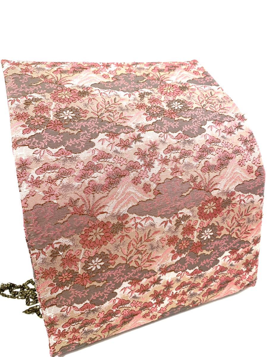春カラー満載、桜色の鮮やかな刺繍織、高級和柄付きの着物帯をリメイクして和風感、高級感が更に増した世界にお一つのみの作品になります。