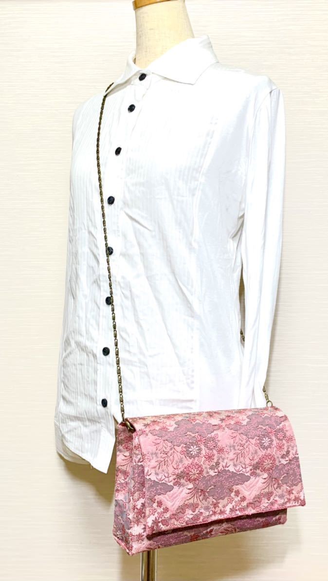 【現品1点限り】HAJIME AYUMU 高級和柄着物帯リメイクデザイン2way ショルダーバッグ 桜色 ハンドメイド ファッション 鞄 セカンドバッグ