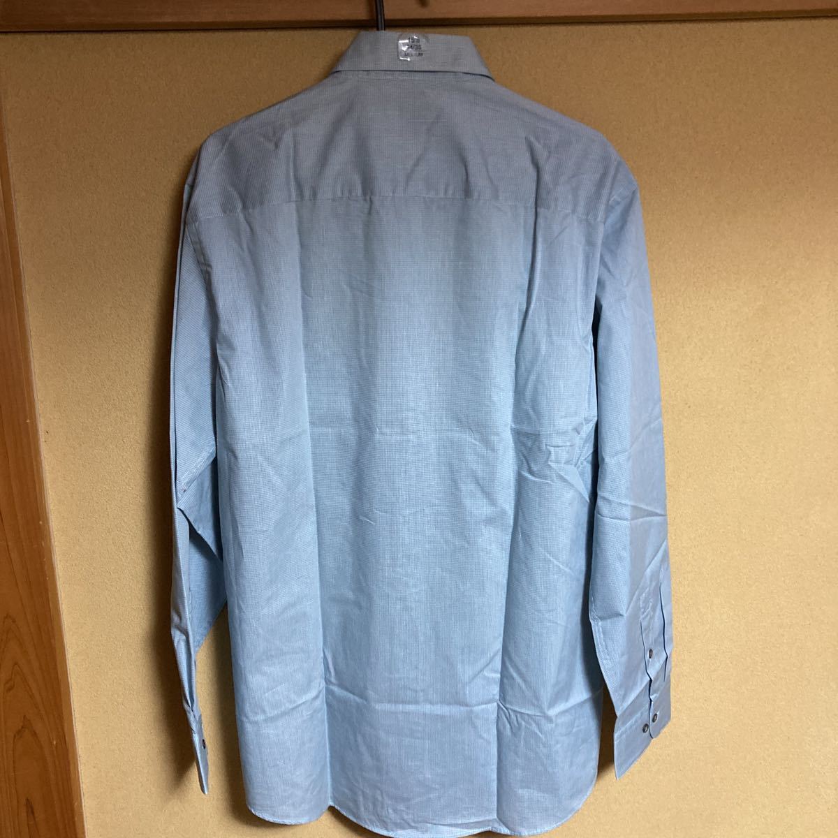 ブルーとグリーンの中間ぐらいの爽やかなメンズ長袖シャツ。未使用となります。