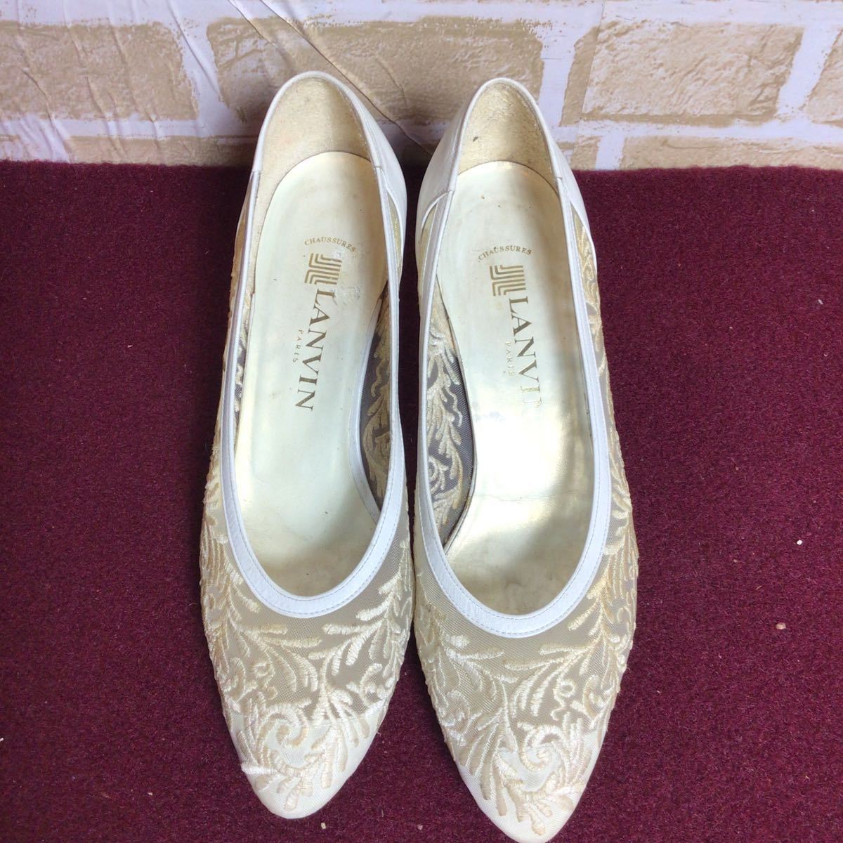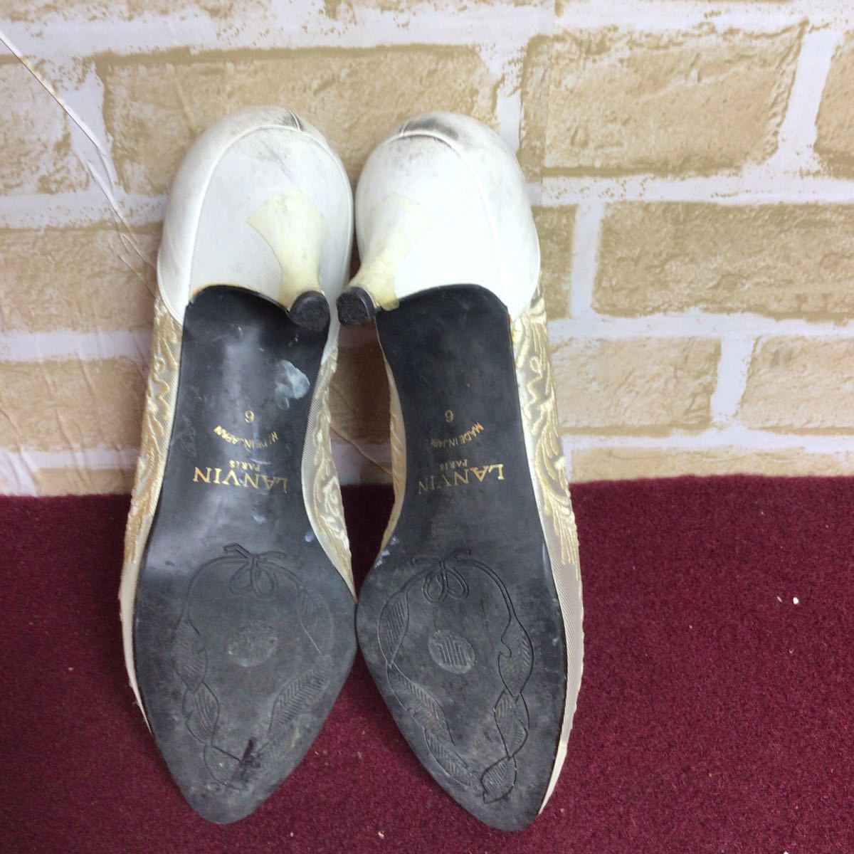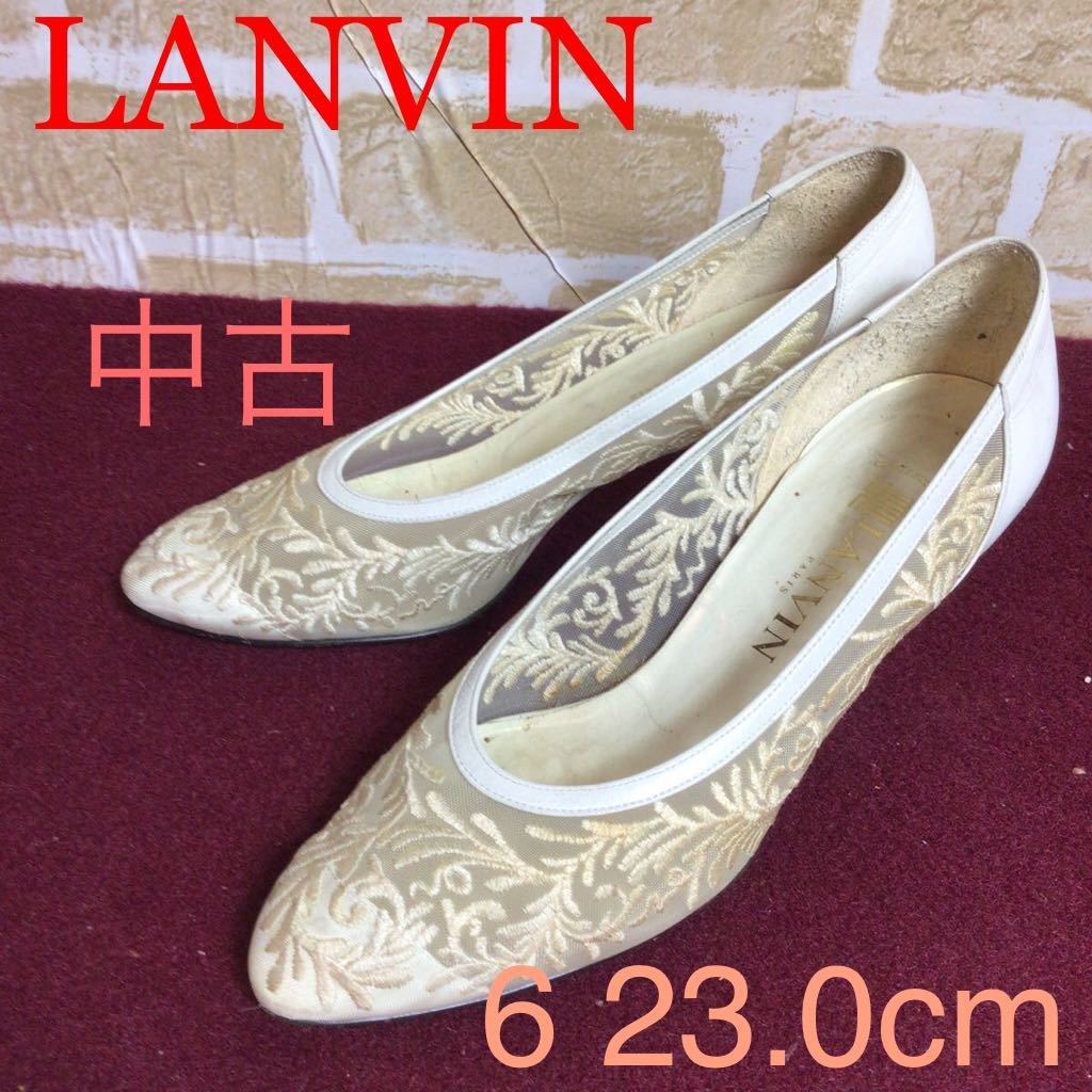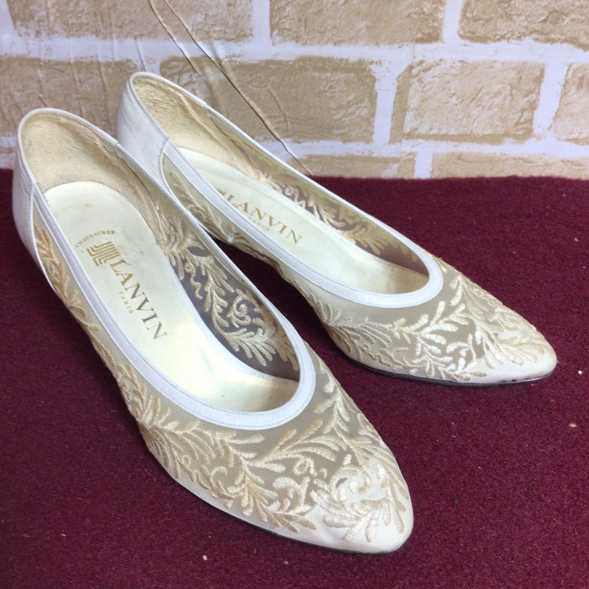 【売り切り!送料無料!】A-128 LANVIN!シースルーパンプス!6 23.0cm!オフホワイト!ベージュ!刺繍!パーティー!ドレス!普段使い!可愛い!中古!