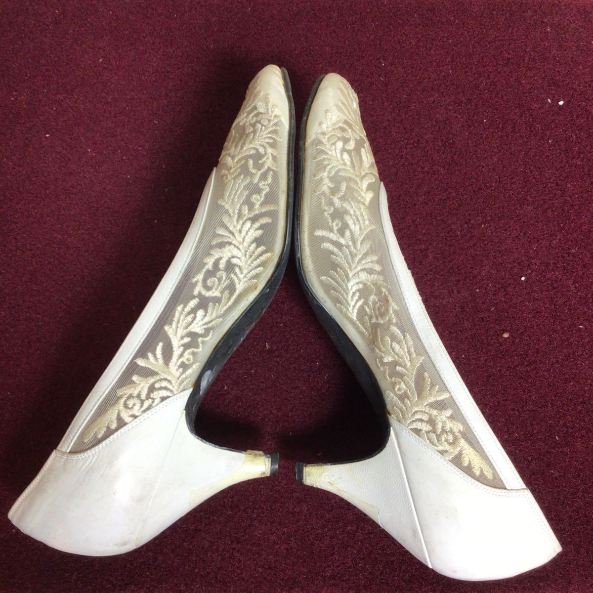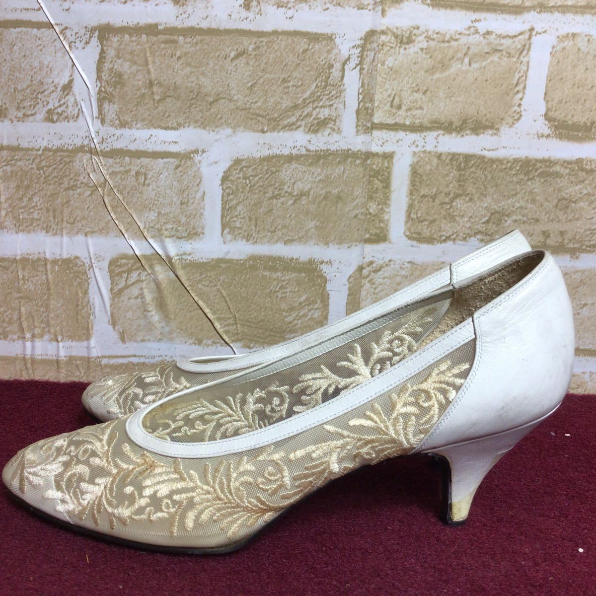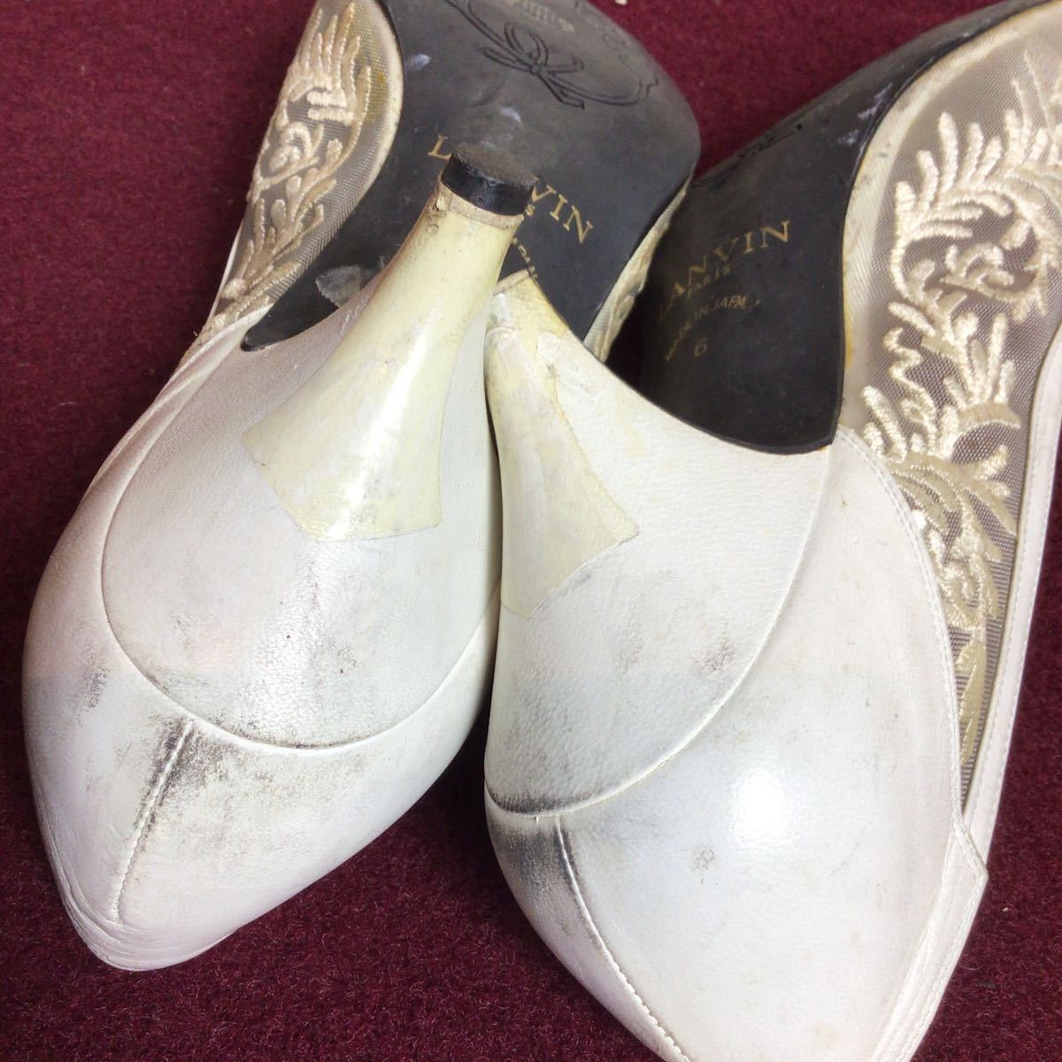 【売り切り!送料無料!】A-128 LANVIN!シースルーパンプス!6 23.0cm!オフホワイト!ベージュ!刺繍!パーティー!ドレス!普段使い!可愛い!中古!