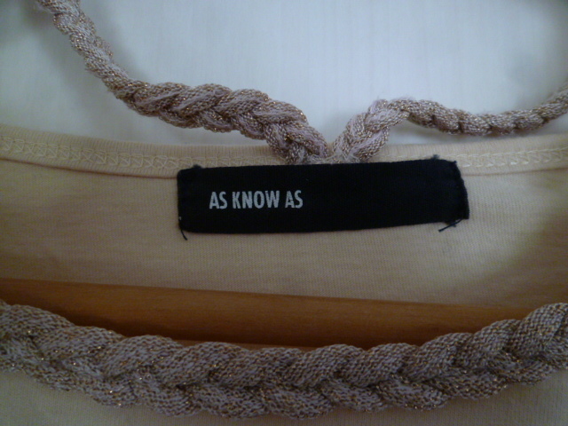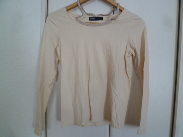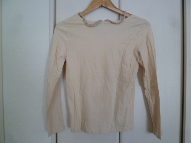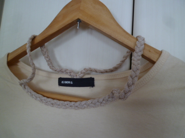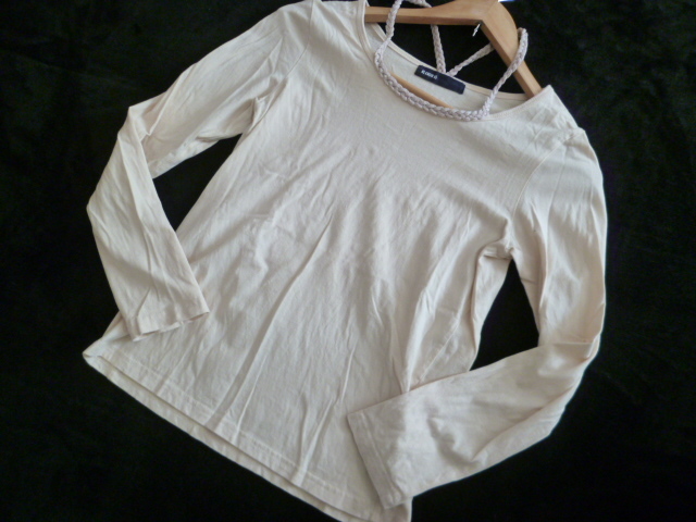 As know As/アズノウアズ△クリームベージュ系三つ編みラメ背中クロスカットソー/長袖トップレイヤード重ね着ナチュラル系△T415