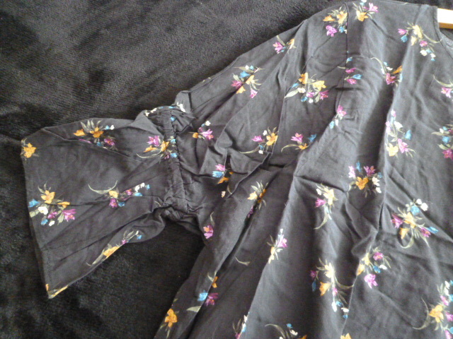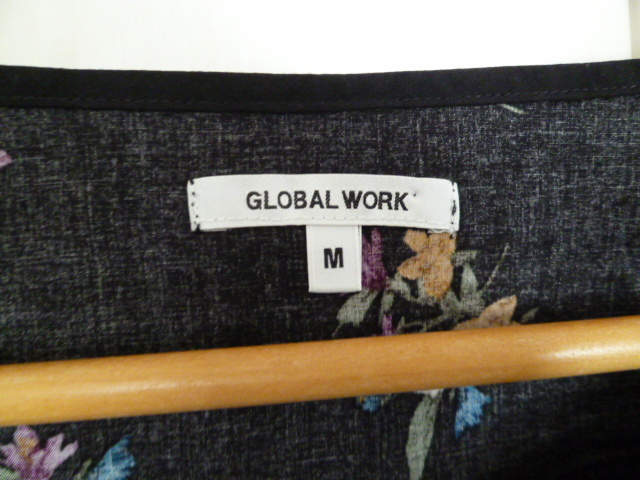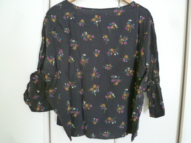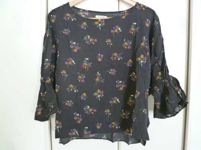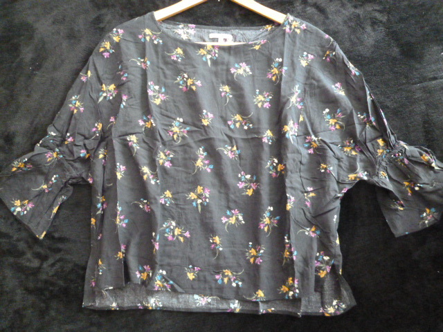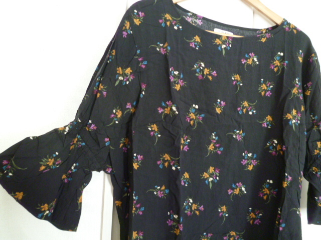 GLOBAL WORK/グローバルワーク△黒小花柄はば広ゆったりベル袖ブラウスカットソーM/ブラック半袖トップス△T415
