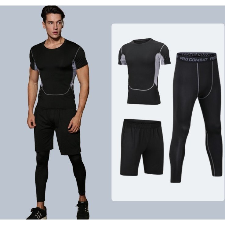 【送料無料】メンズ スポーツウエア 半袖 ハーフパンツ レギンス ブラックXL