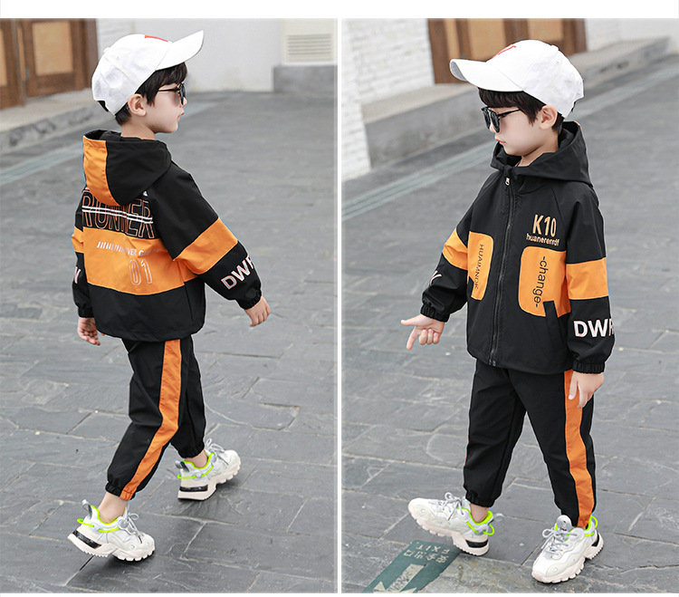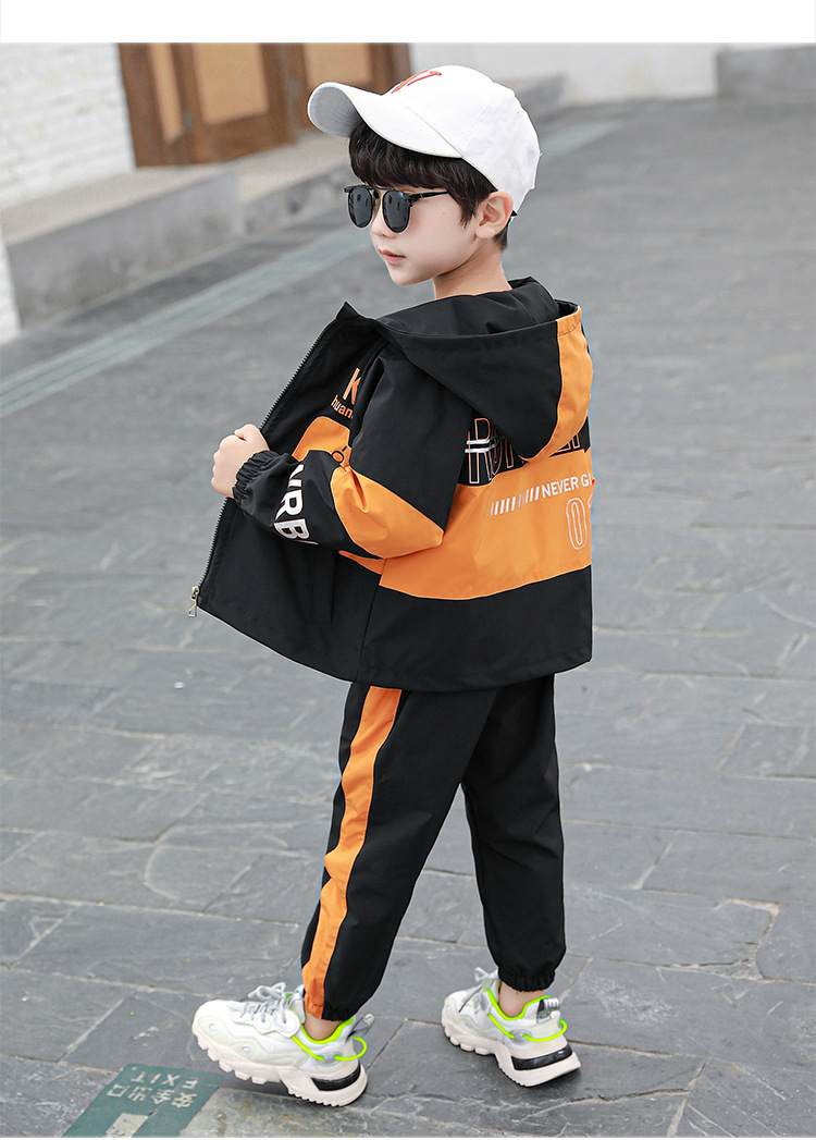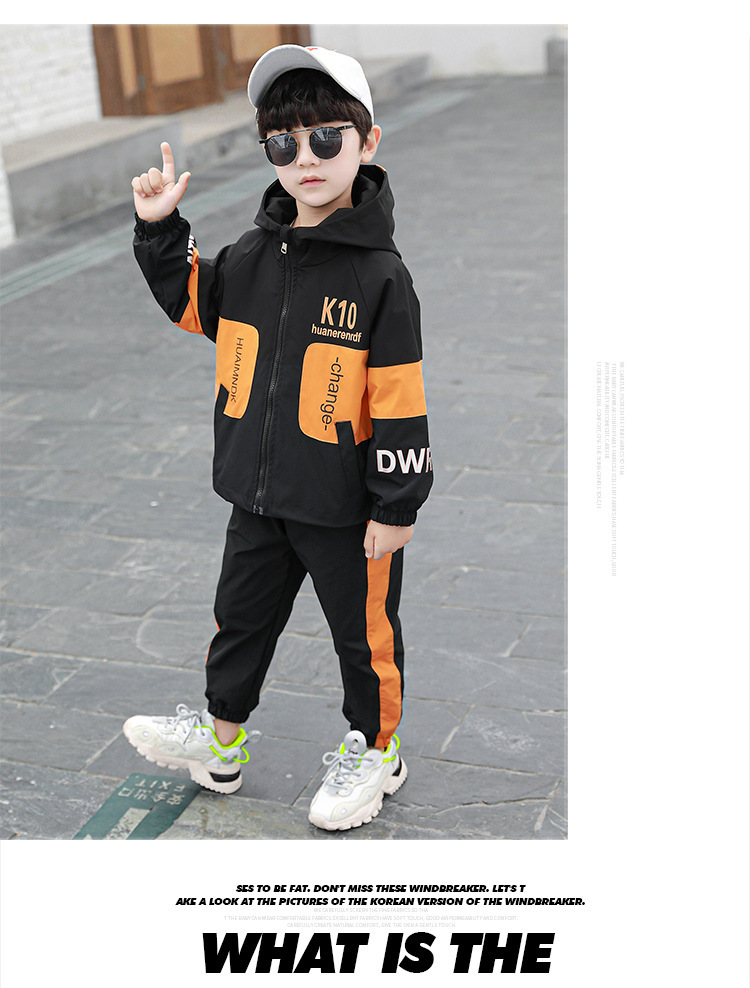 ファッションボーイズ ツーピース ルーズフィット感 アウトドア ブラックXオレンジ 120cm