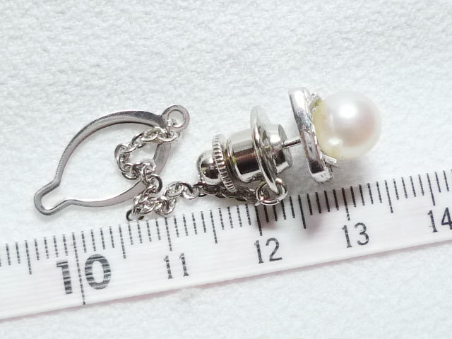 画像のお品、シルバー製の状態のなかなか良いアコヤ真珠付きラペルピンです。