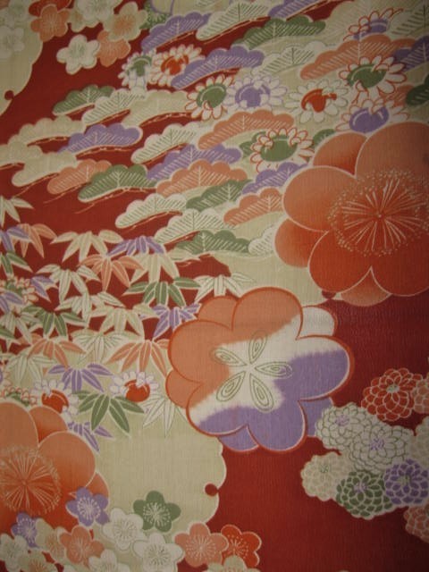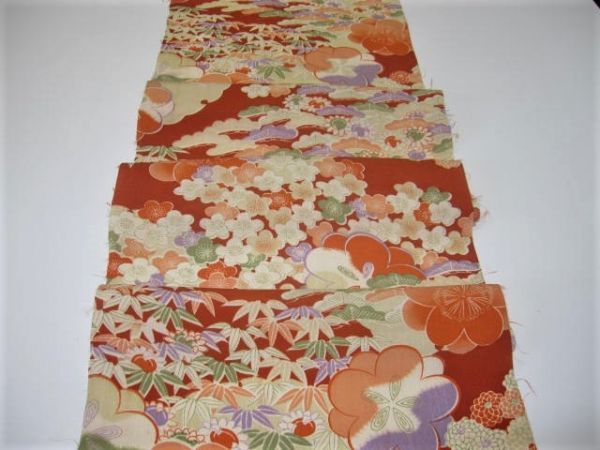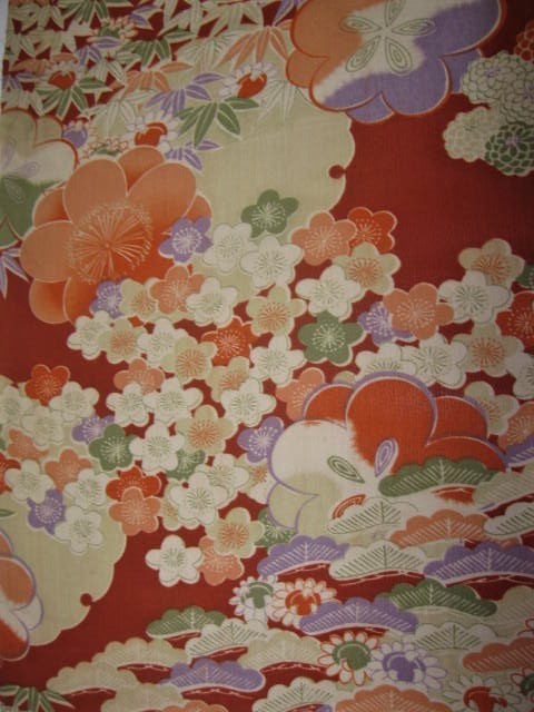 1-31★赤茶*菊*松竹梅*交織*古布はぎれ★一閑張り/文化人形